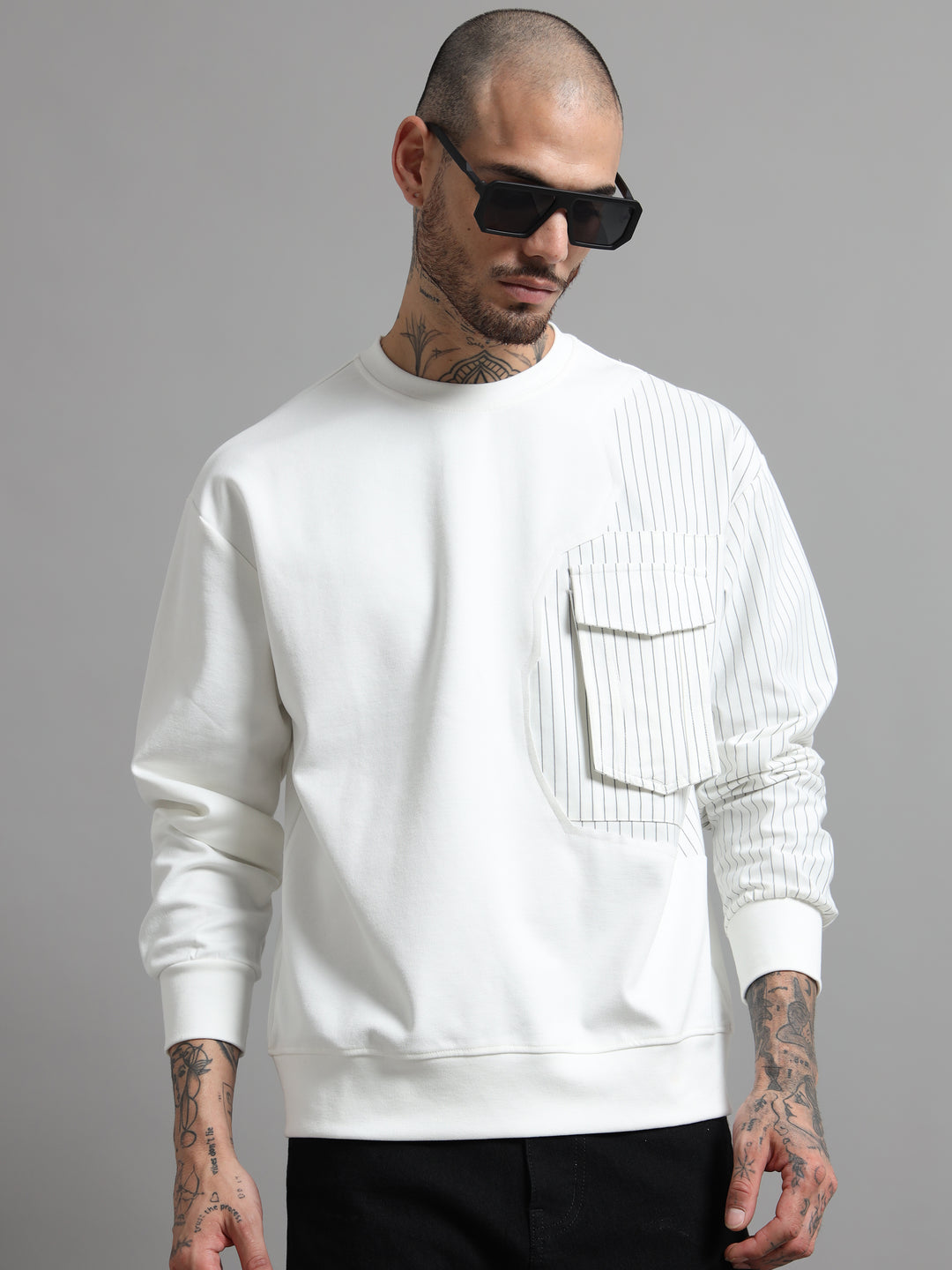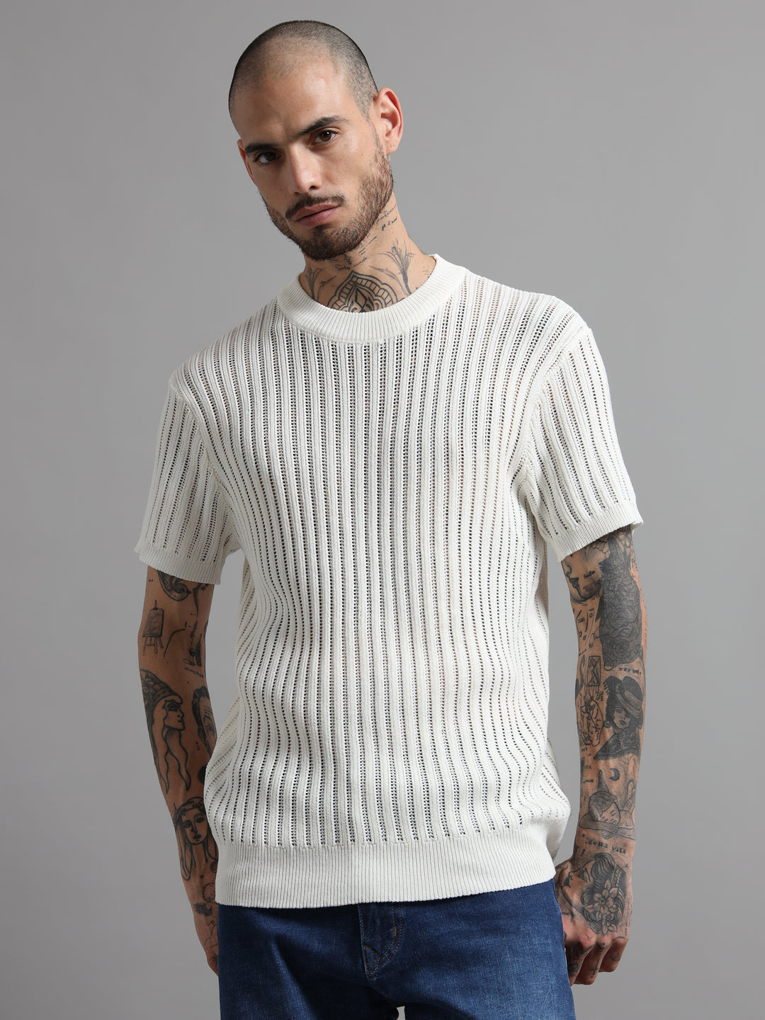 Men's Rib-Knit Crewneck Sweater T-Shirt - White