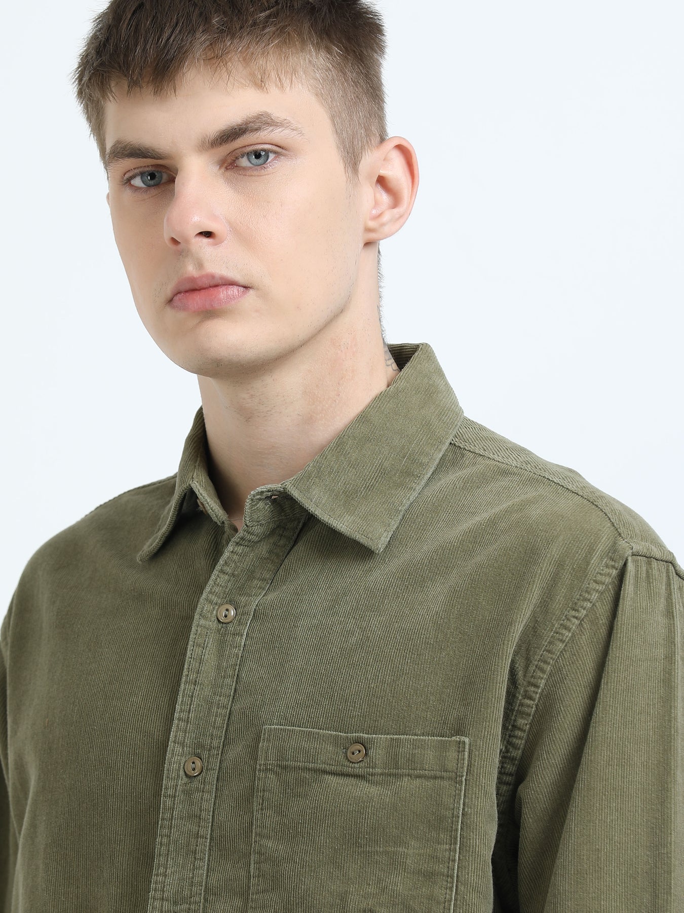 The textured weave adds a subtle depth to the neutral beige tone, giving it a refined look that transitions seamlessly from weekday meetings to weekend outings. Its relaxed fit ensures breathable comfort, while the button-down front and single chest pocket bring a touch of classic tailoring.