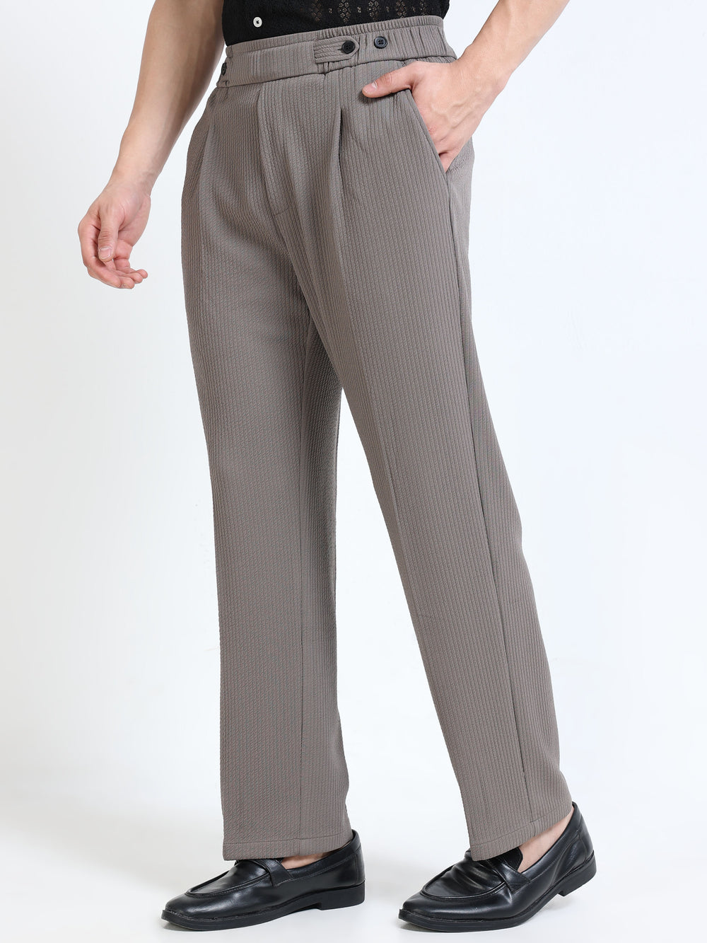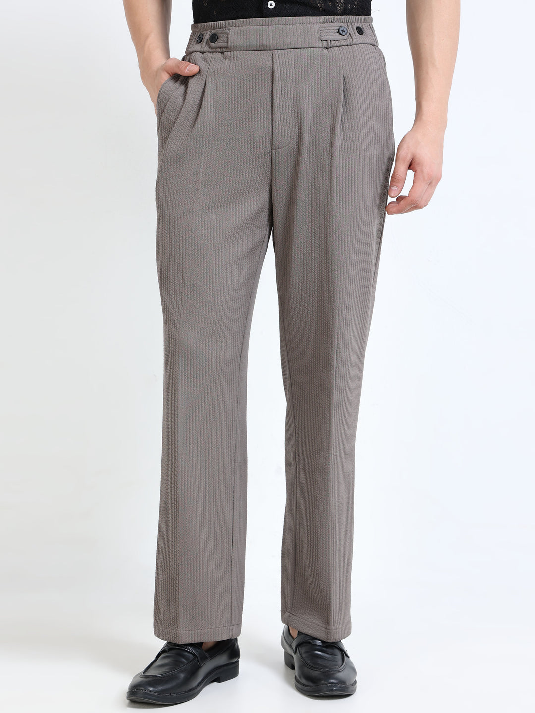 Textured Dual-Button Pleated Trousers