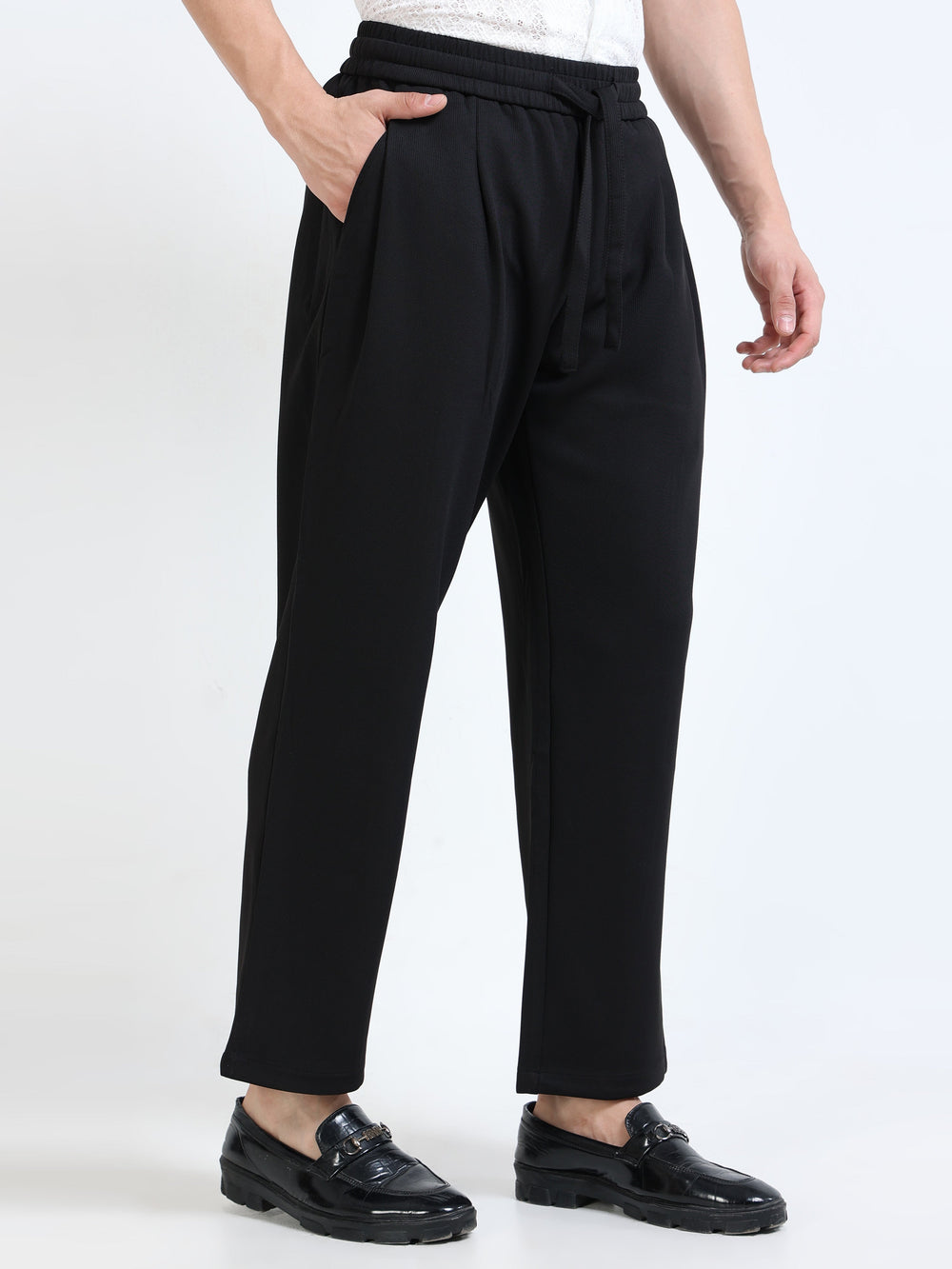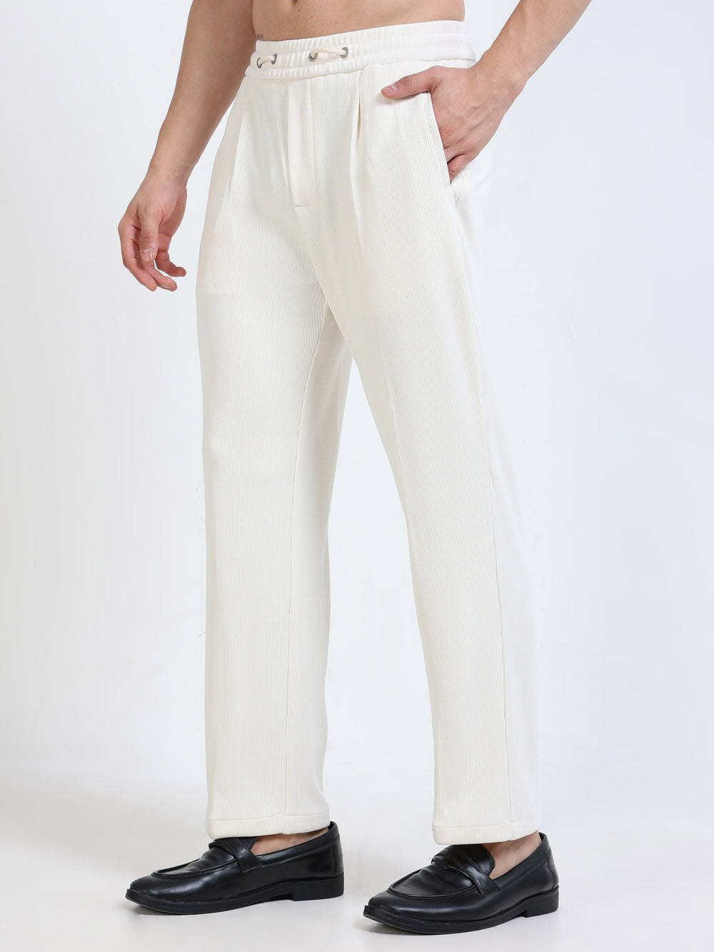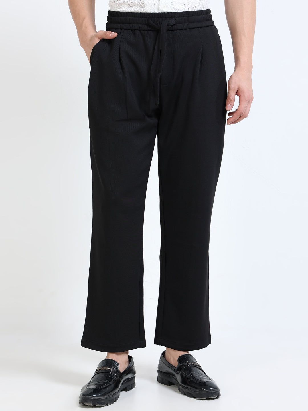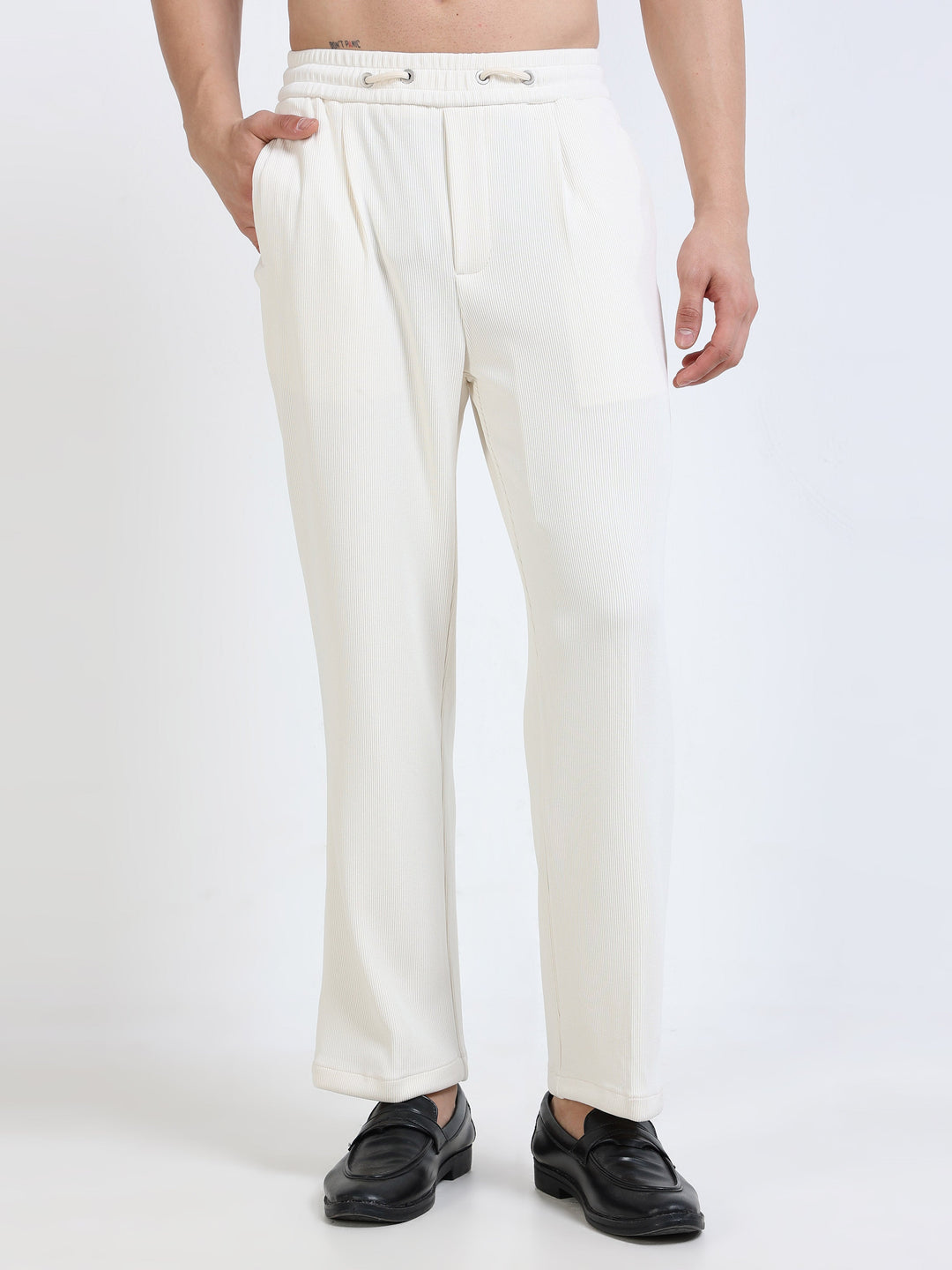 Textured Premium Drawstring Straight Trousers
