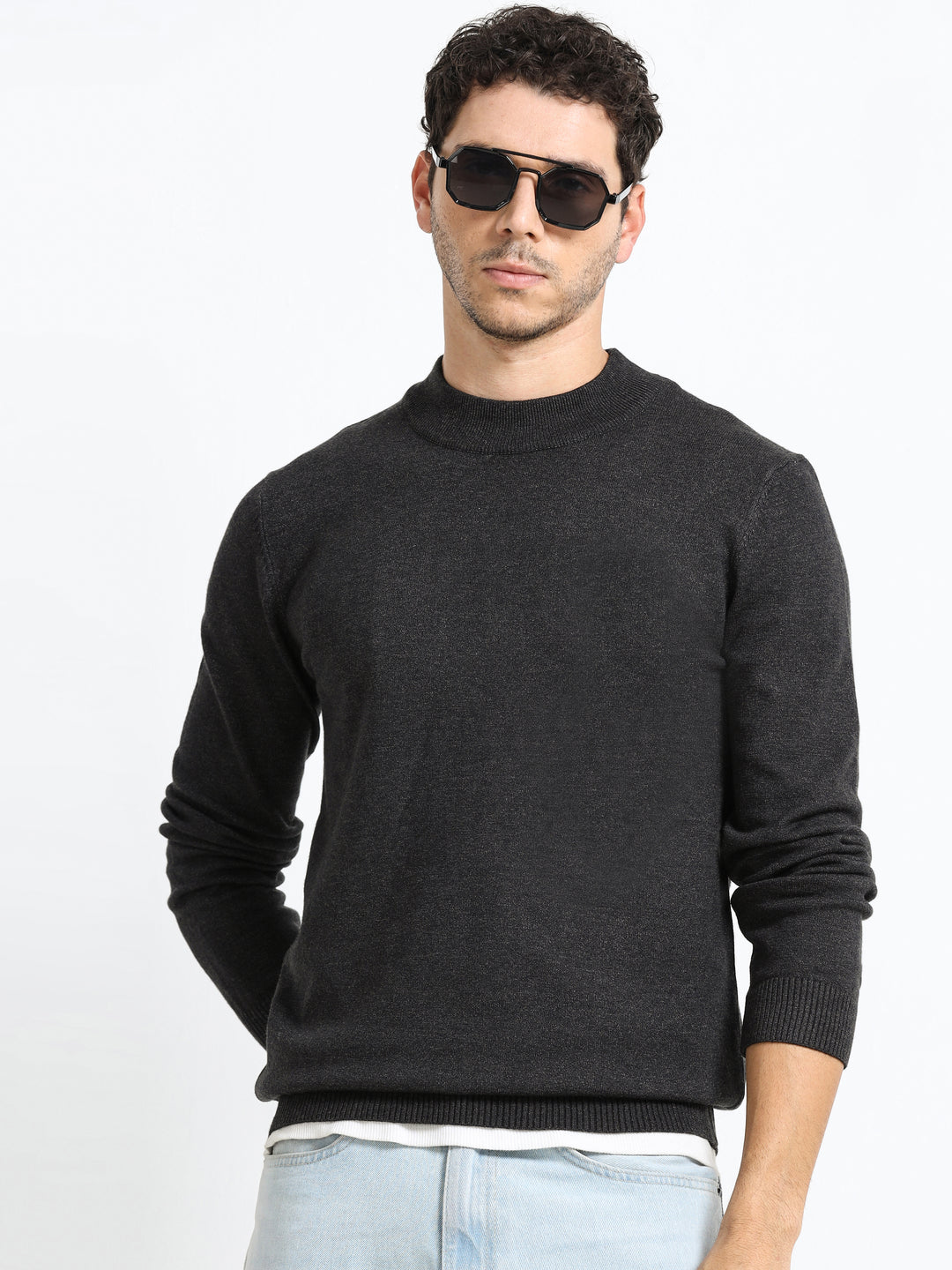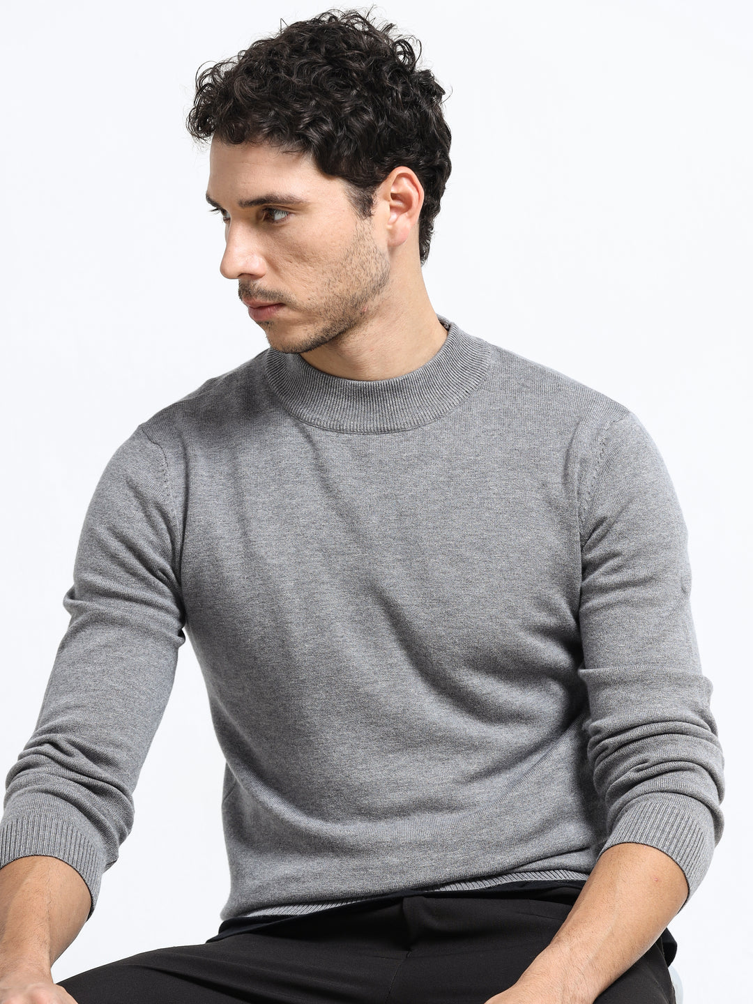 Contour Mock Neck Charcoal Mélange Knit