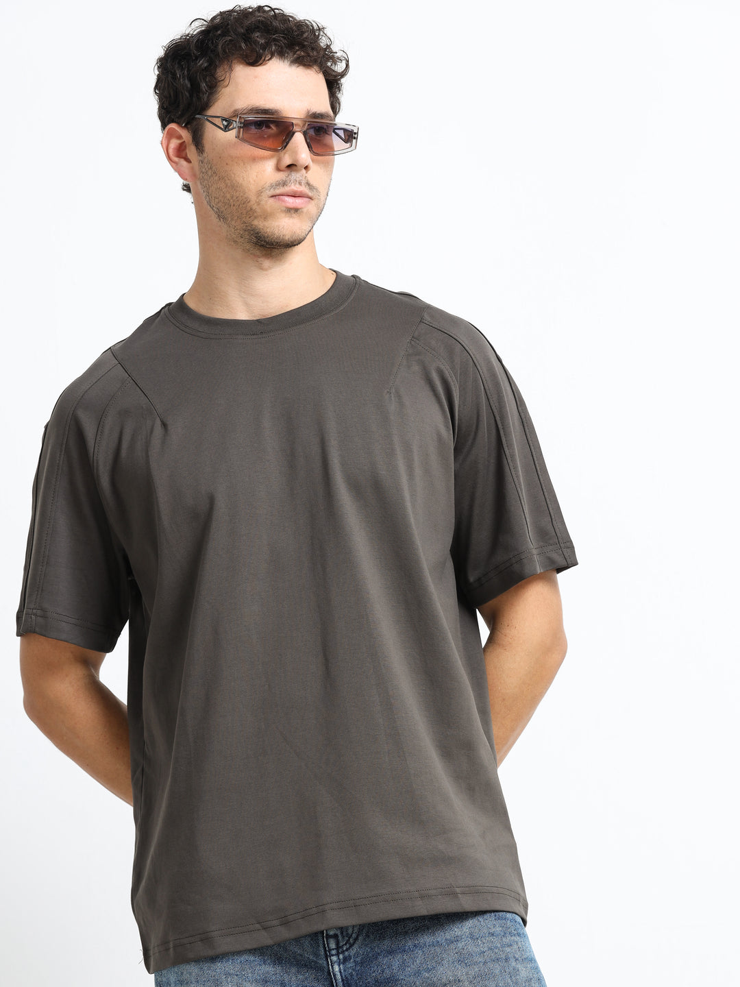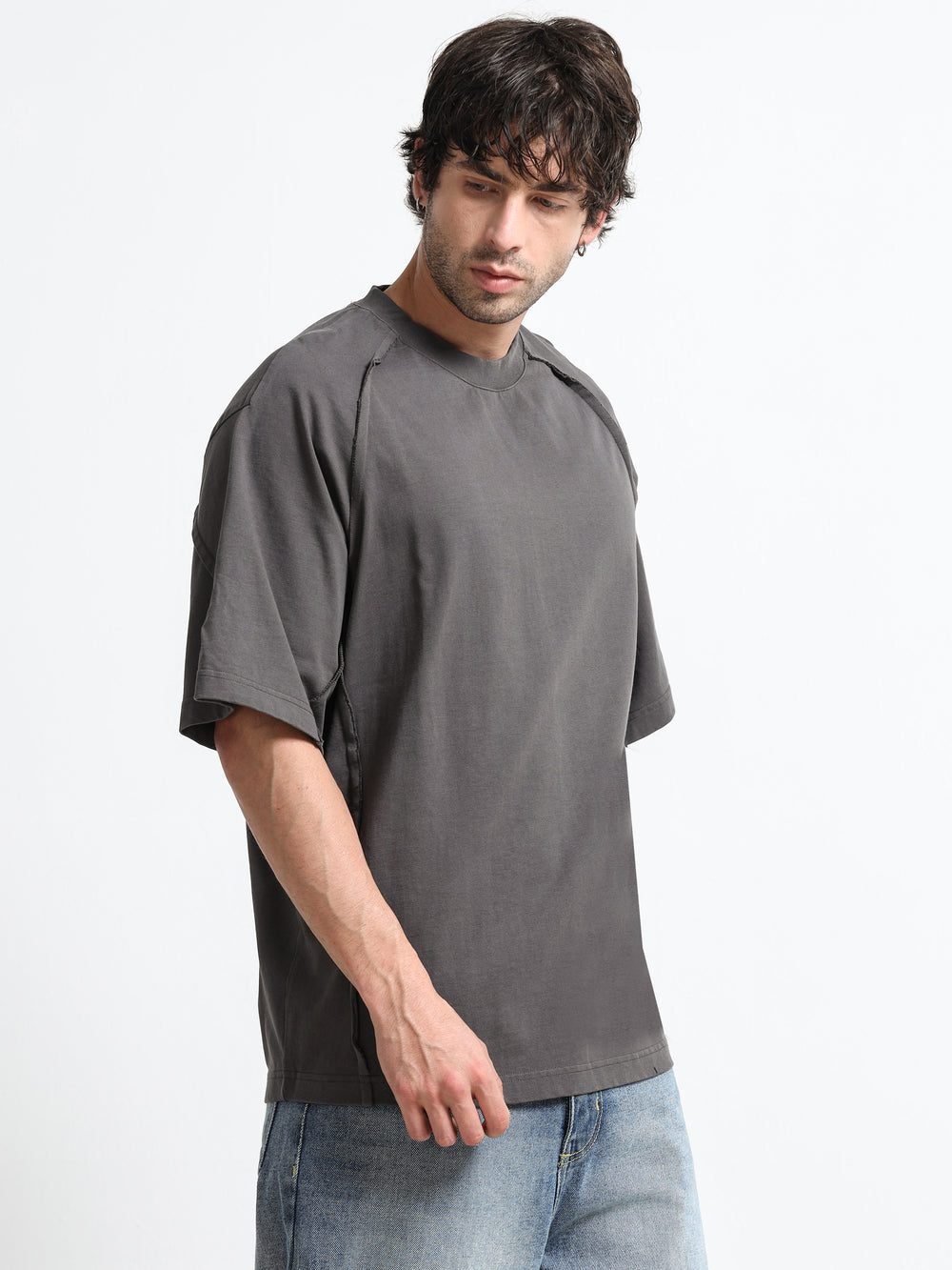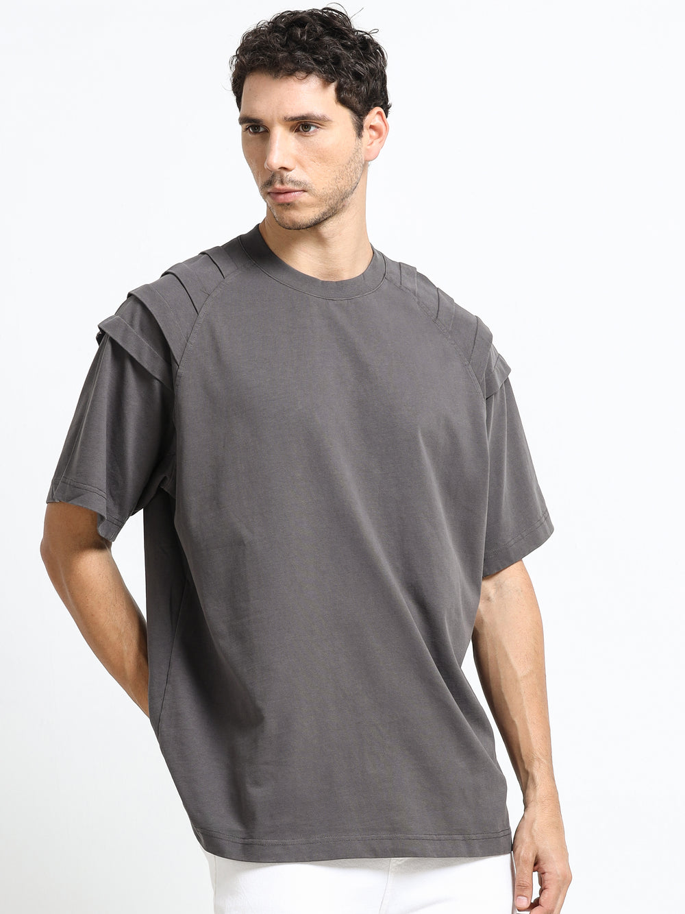 Layered Shoulder Charcoal T-Shirt