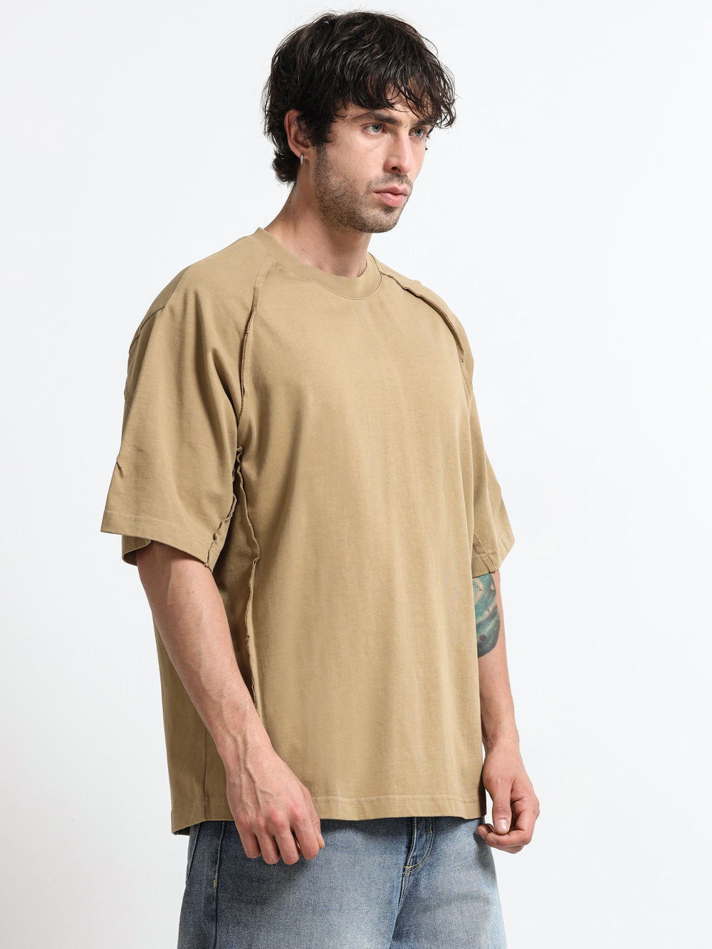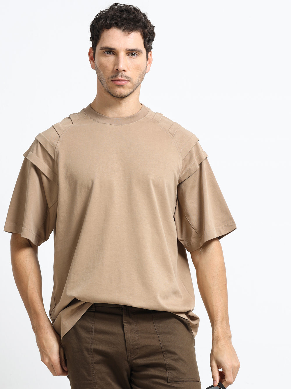 Layered Shoulder Khaki T-Shirt