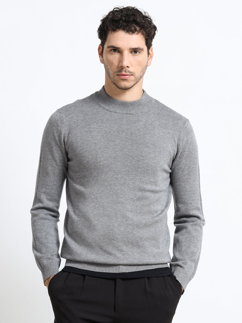 Contour Mock Neck Heather Grey Knit