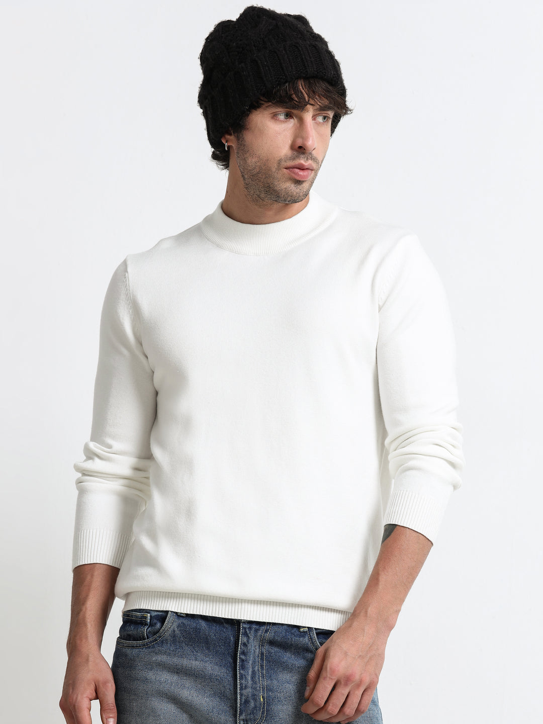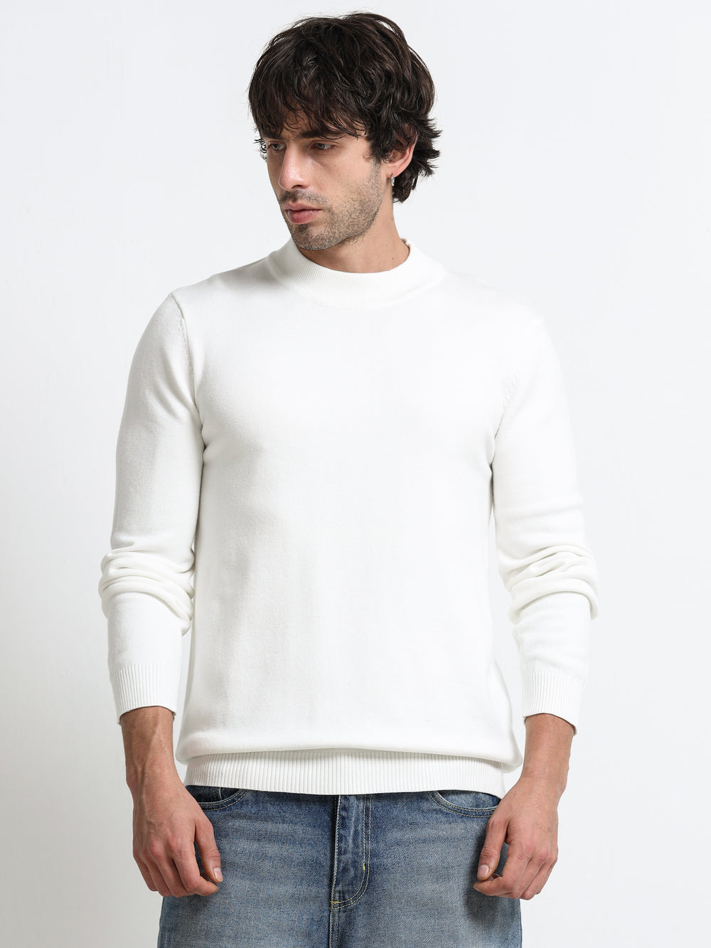 Contour Mock Neck Ivory White Knit