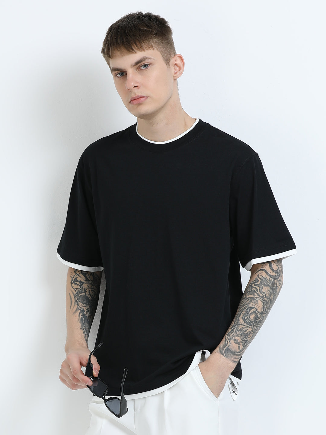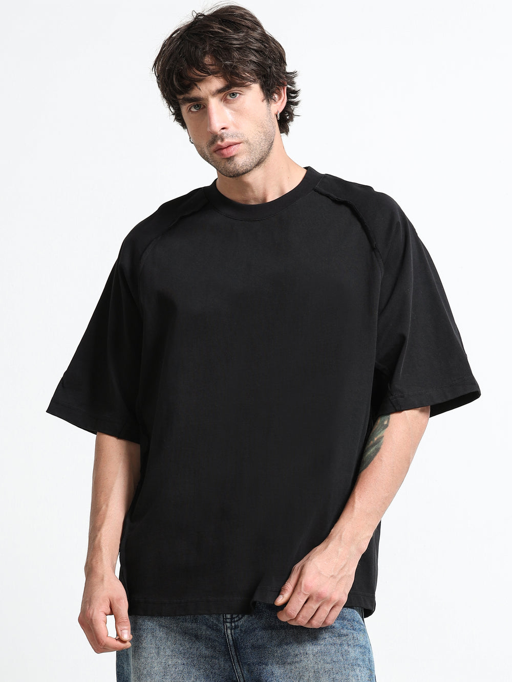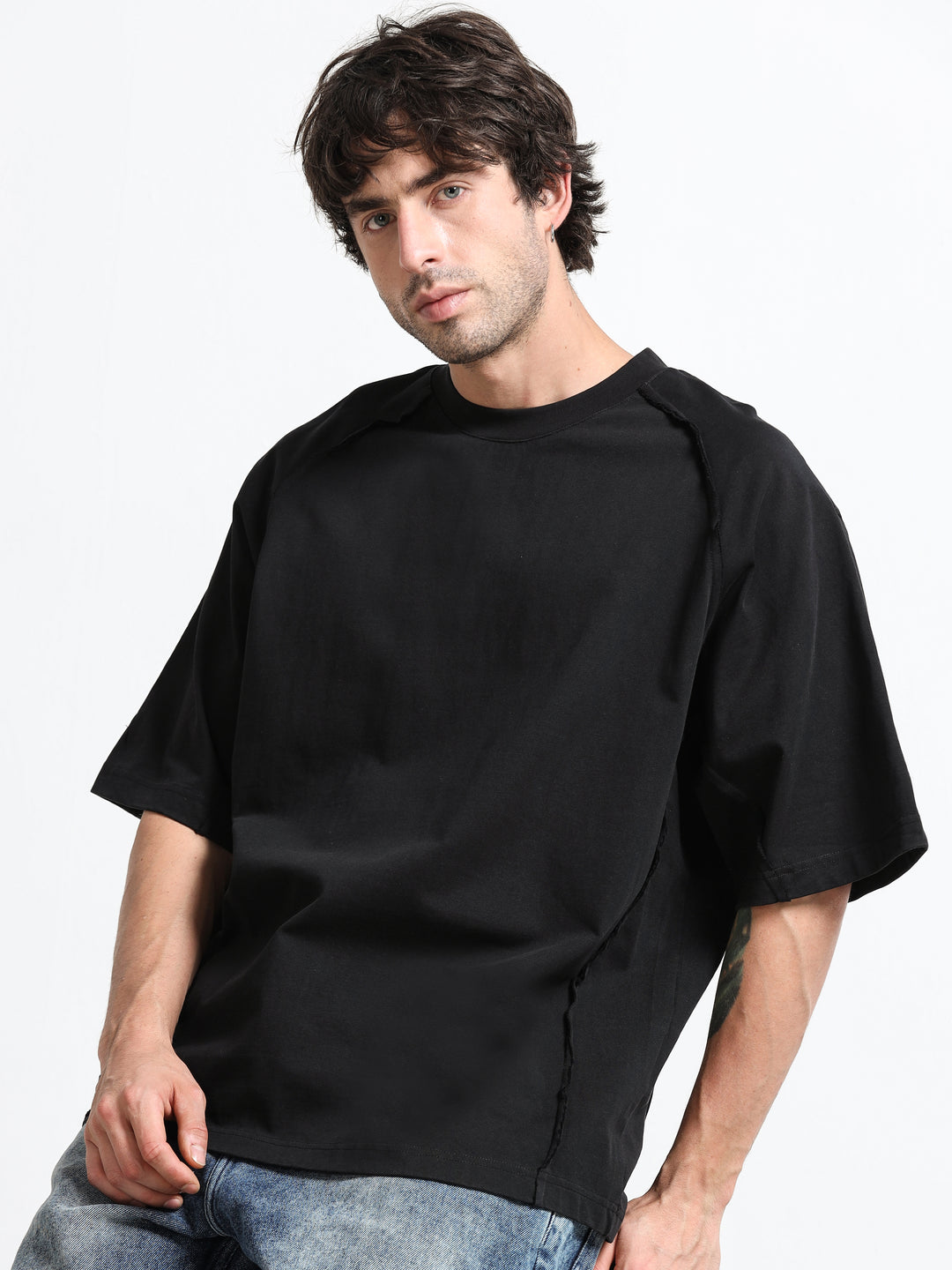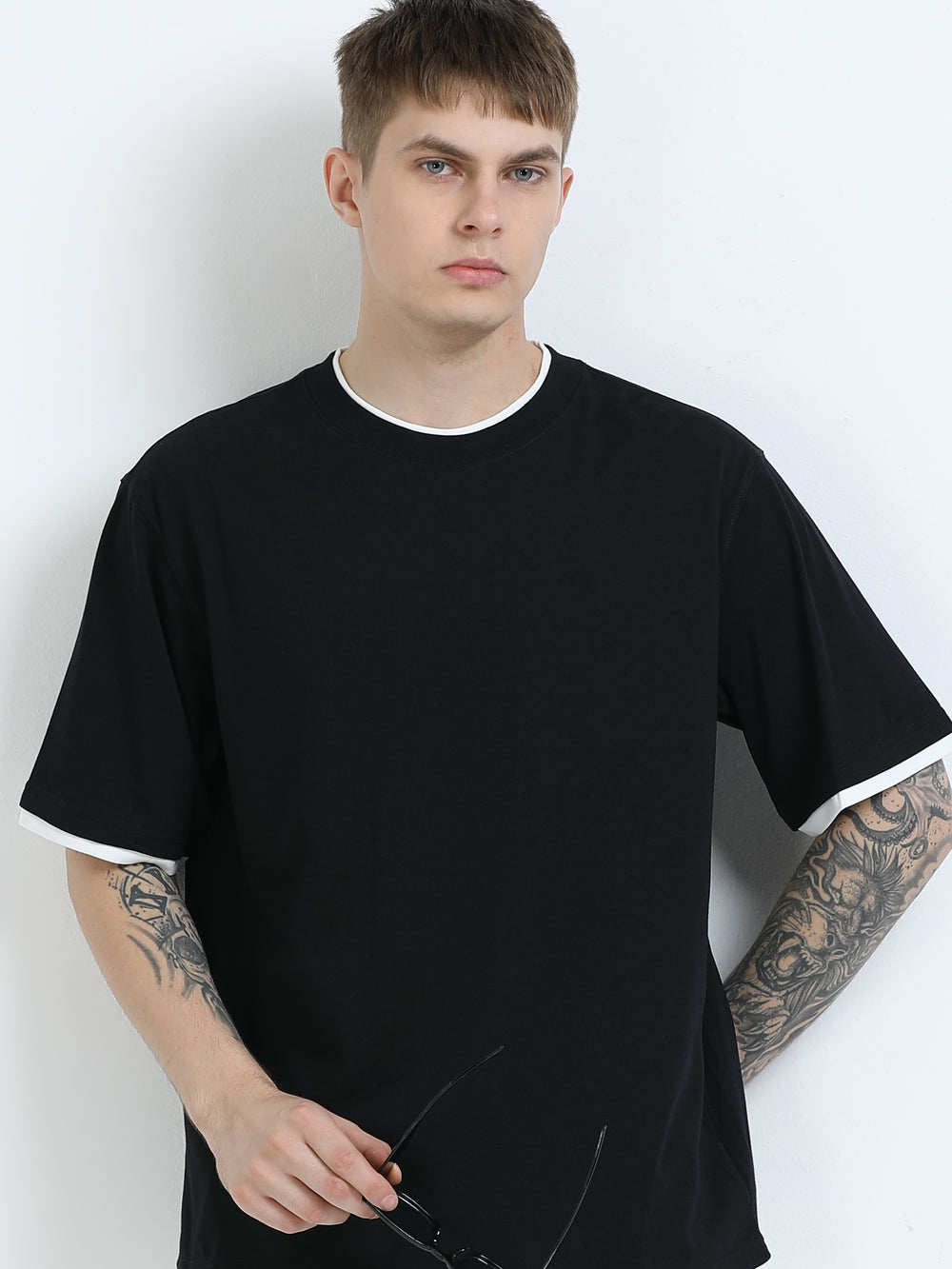 Layered Shoulder Black T-Shirt