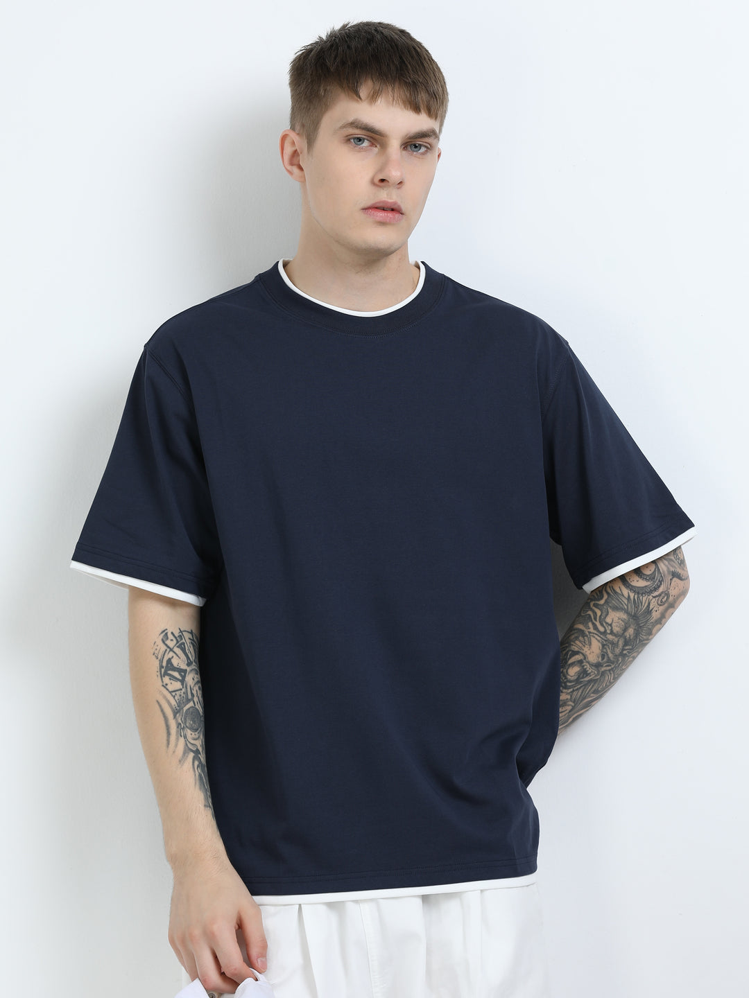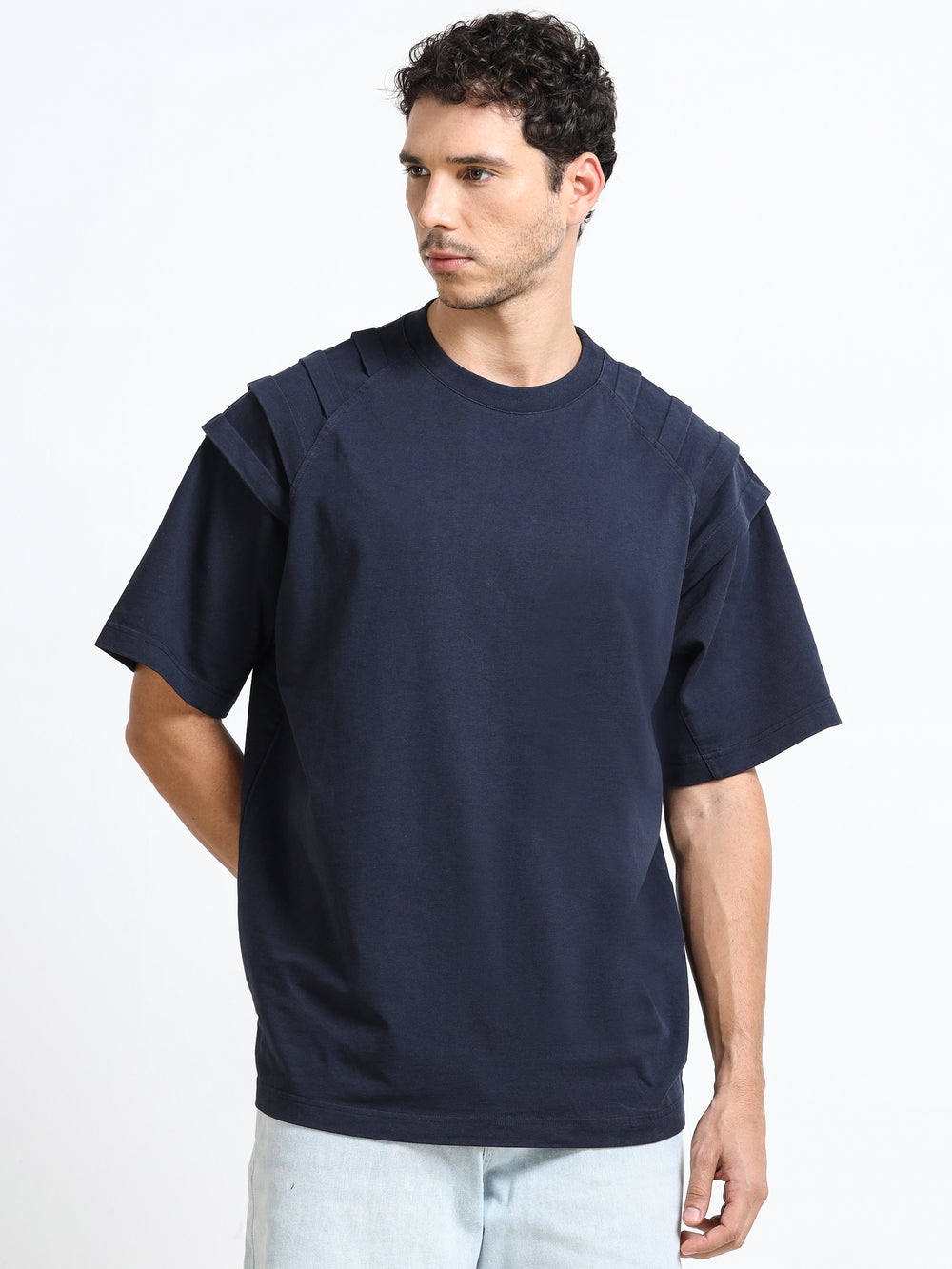 Layered Shoulder Navy T-Shirt