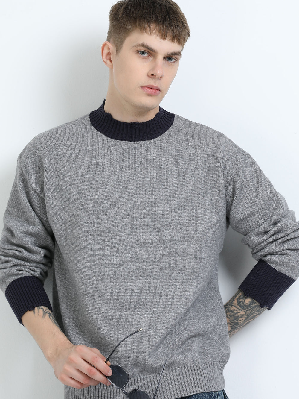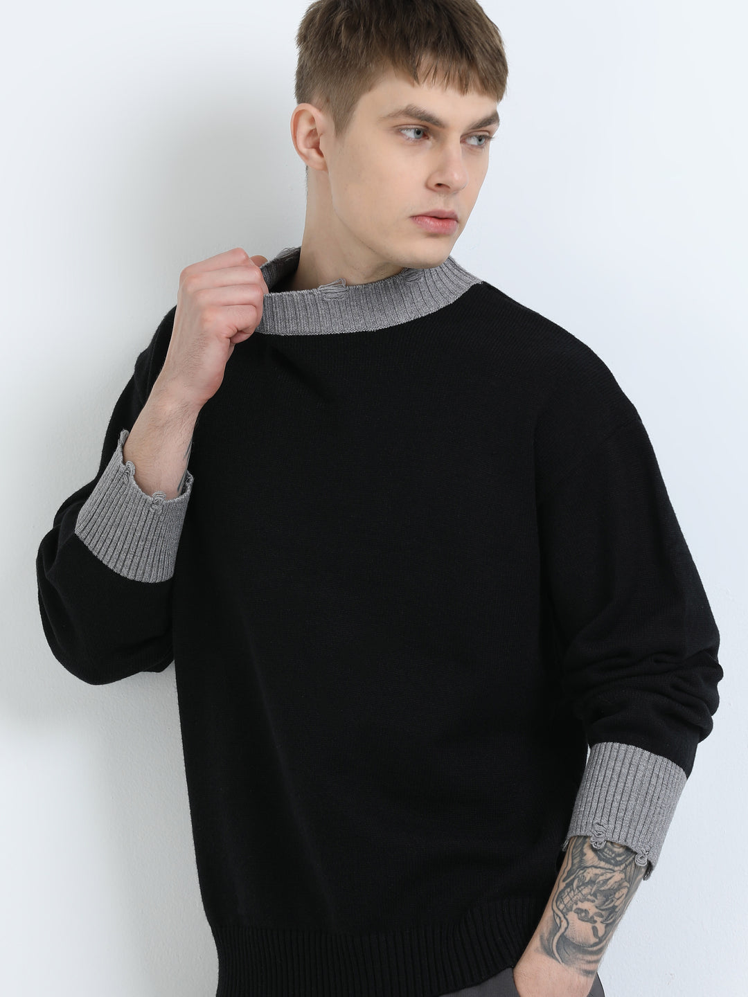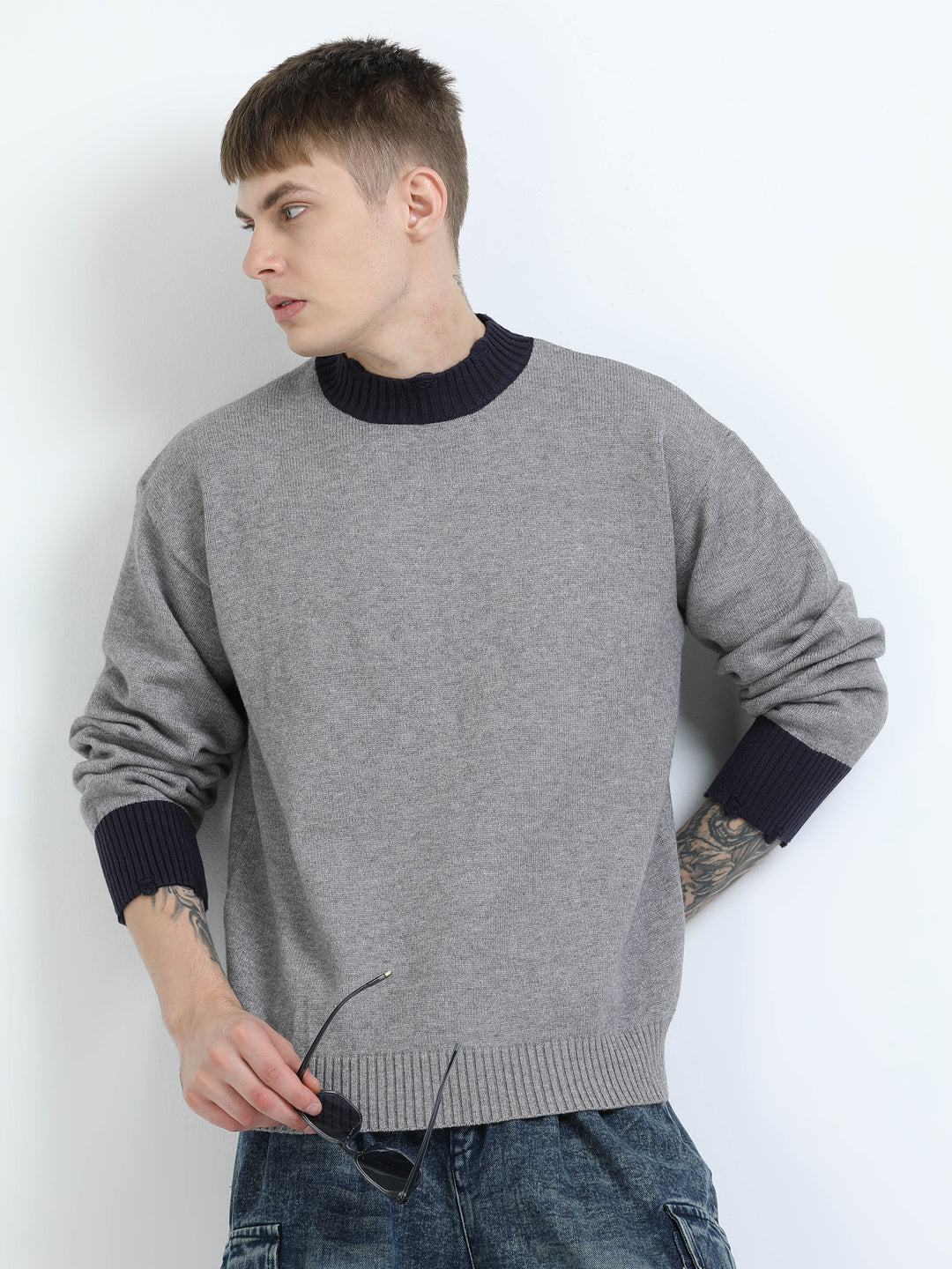 Essential Contrast Trim Knit Sweater