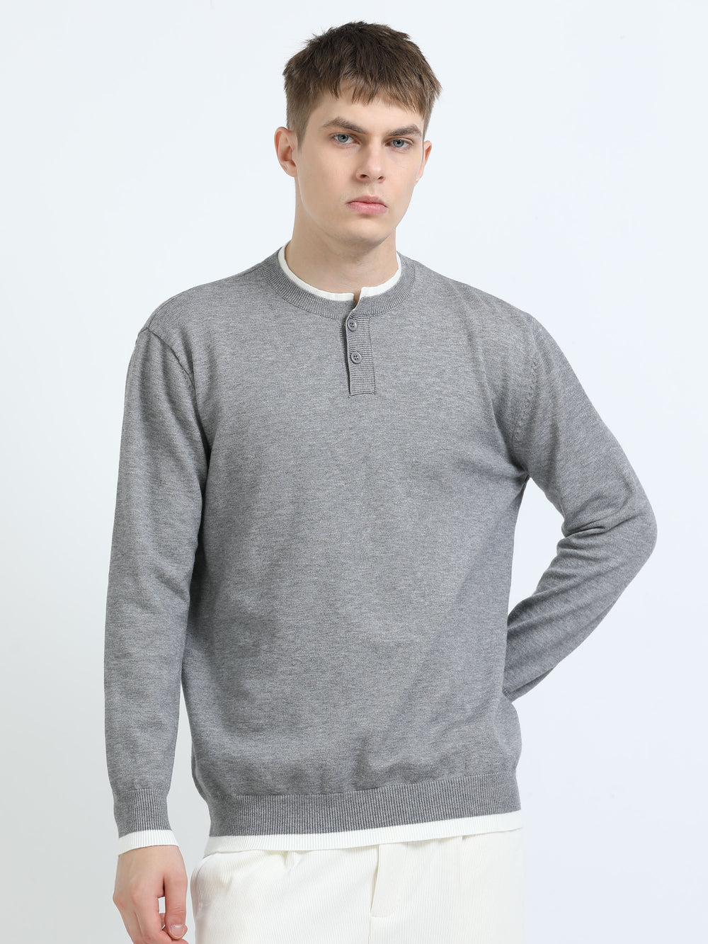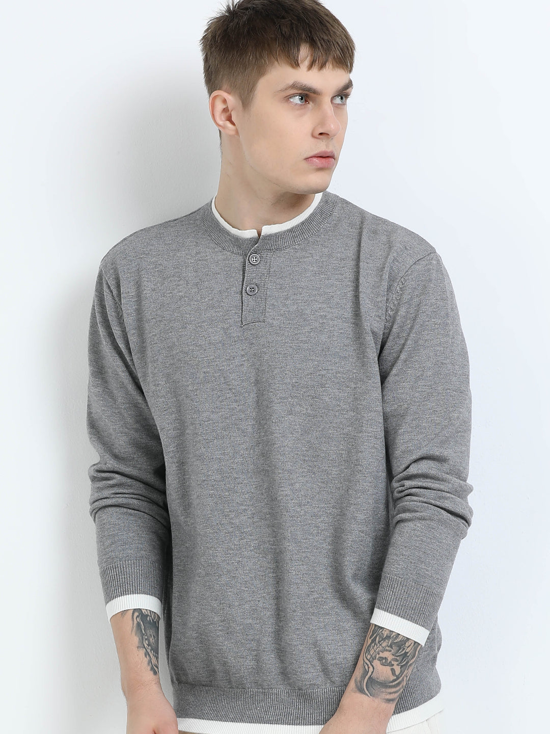 Classic Henley Knit Sweater