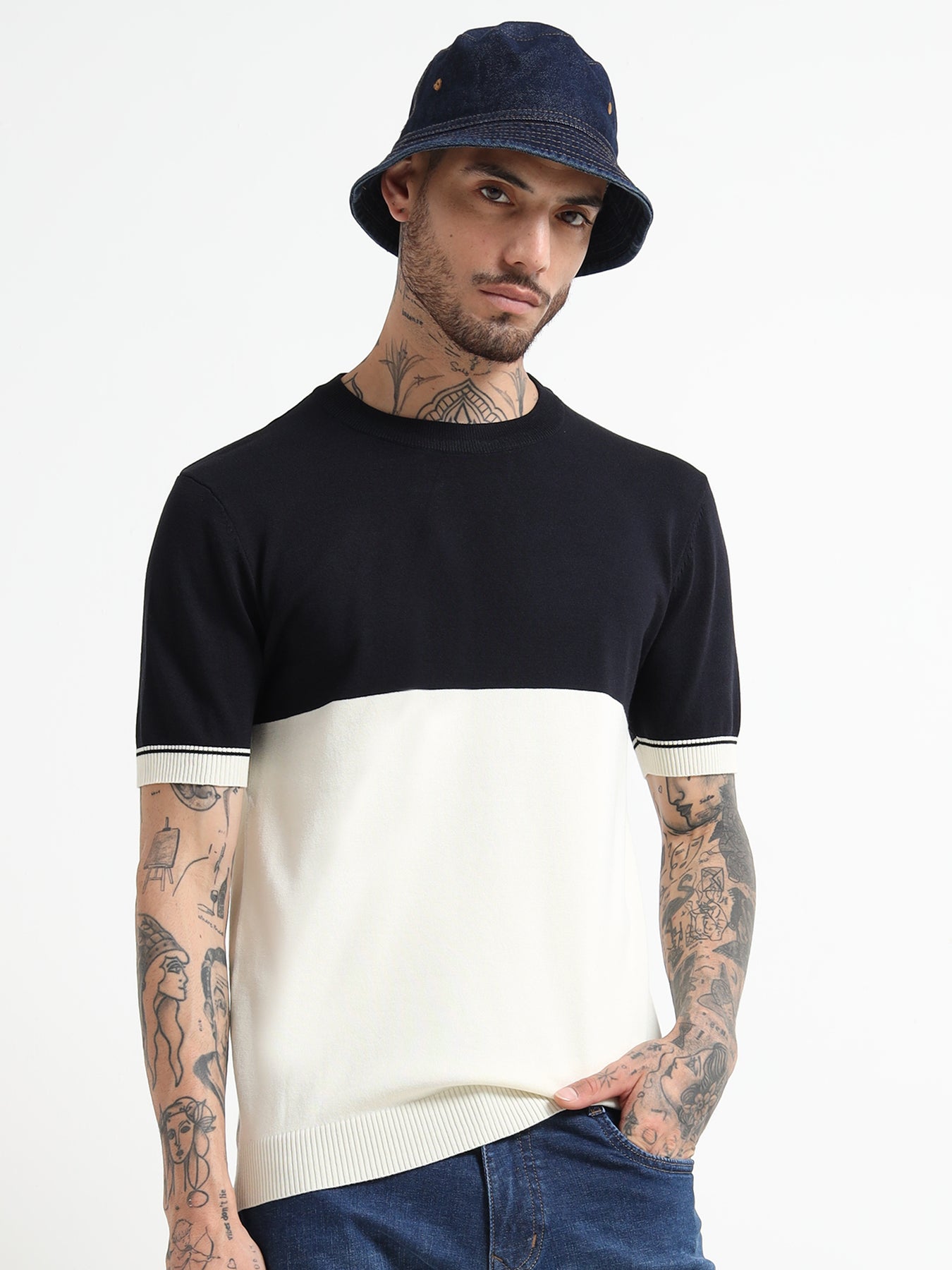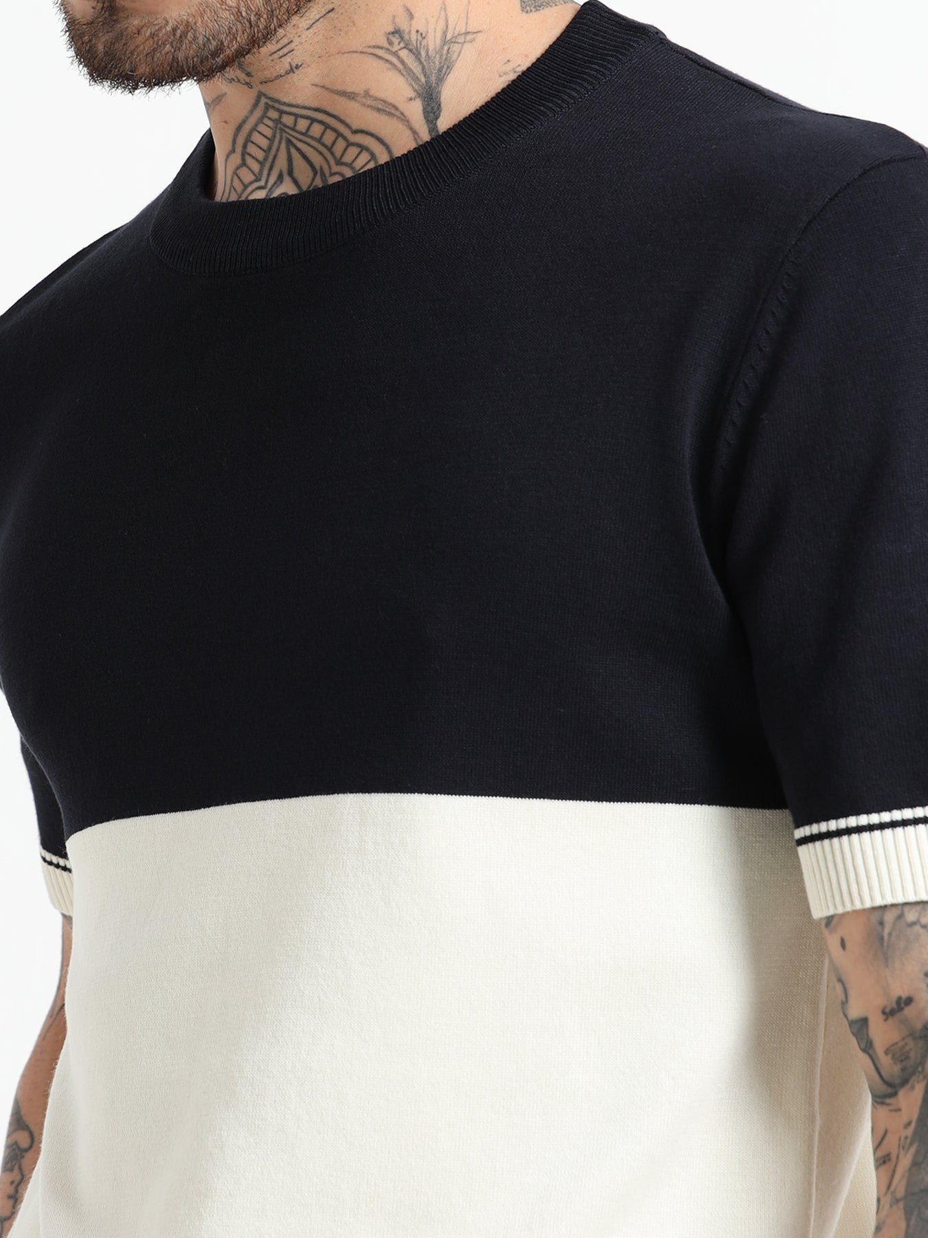 This two-tone premium knitted t-shirt combines white and blue hues with refined ribbed detailing for a sophisticated look. Crafted from soft, lightweight fabric, it offers exceptional comfort while maintaining a tailored fit that enhances your silhouette. Ideal for those seeking both style and ease in a versatile wardrobe staple.