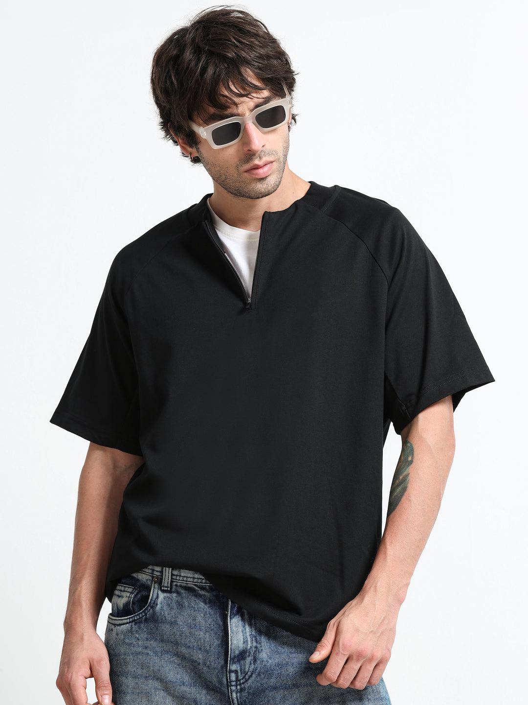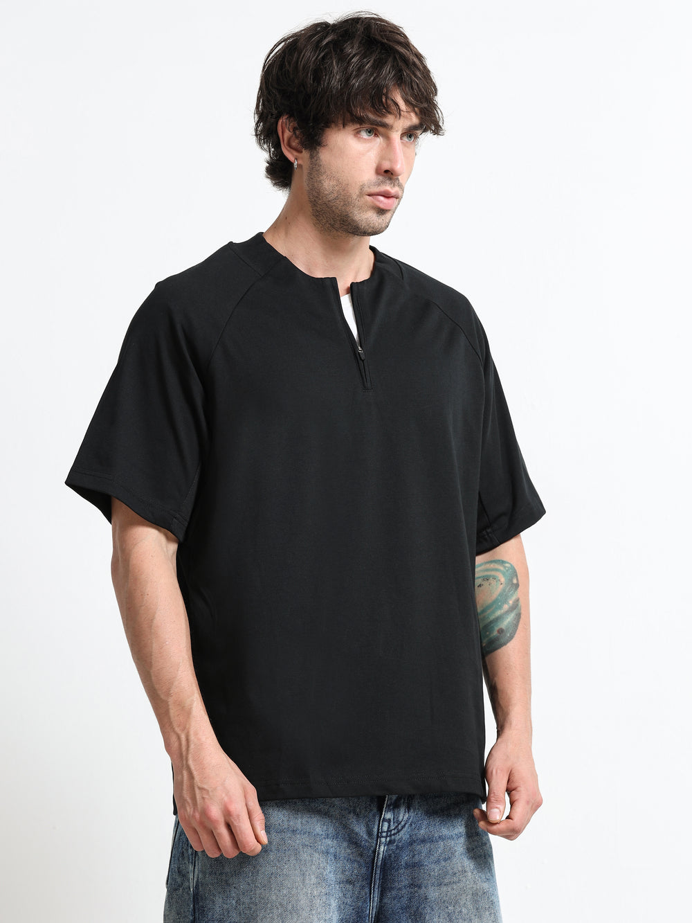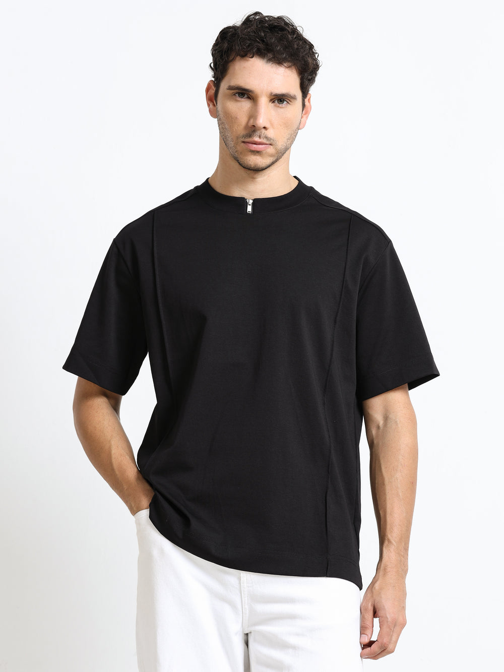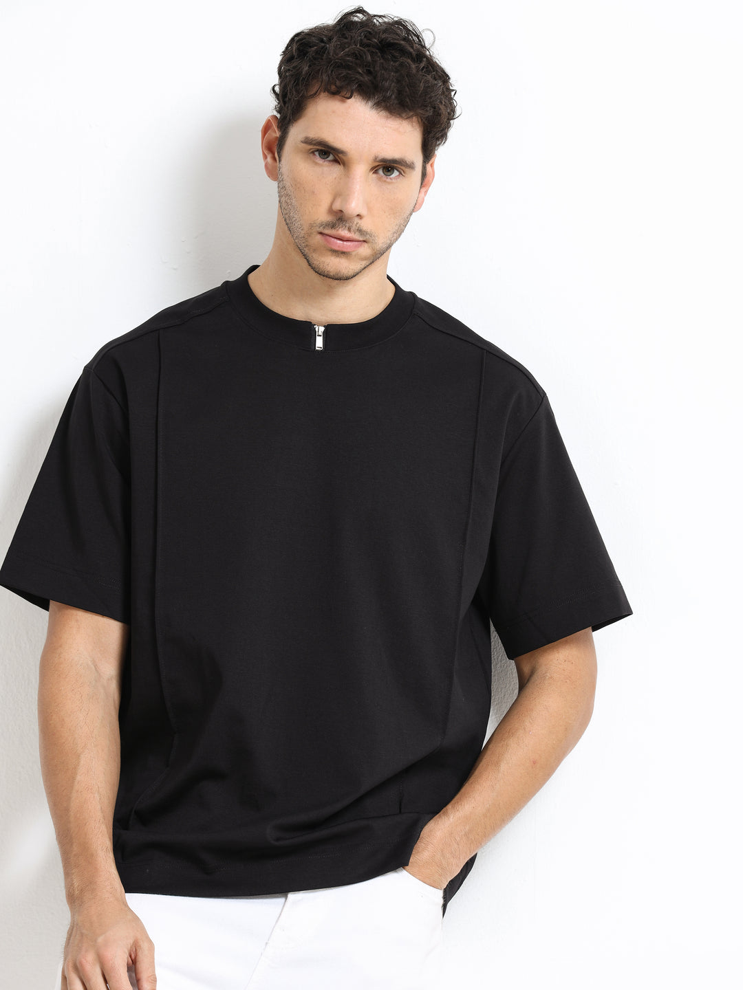 Minimal Zip-Neck Black T-Shirt