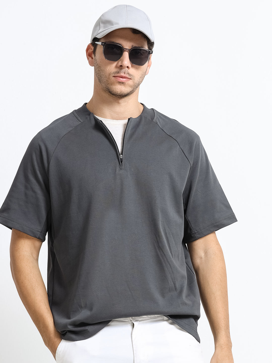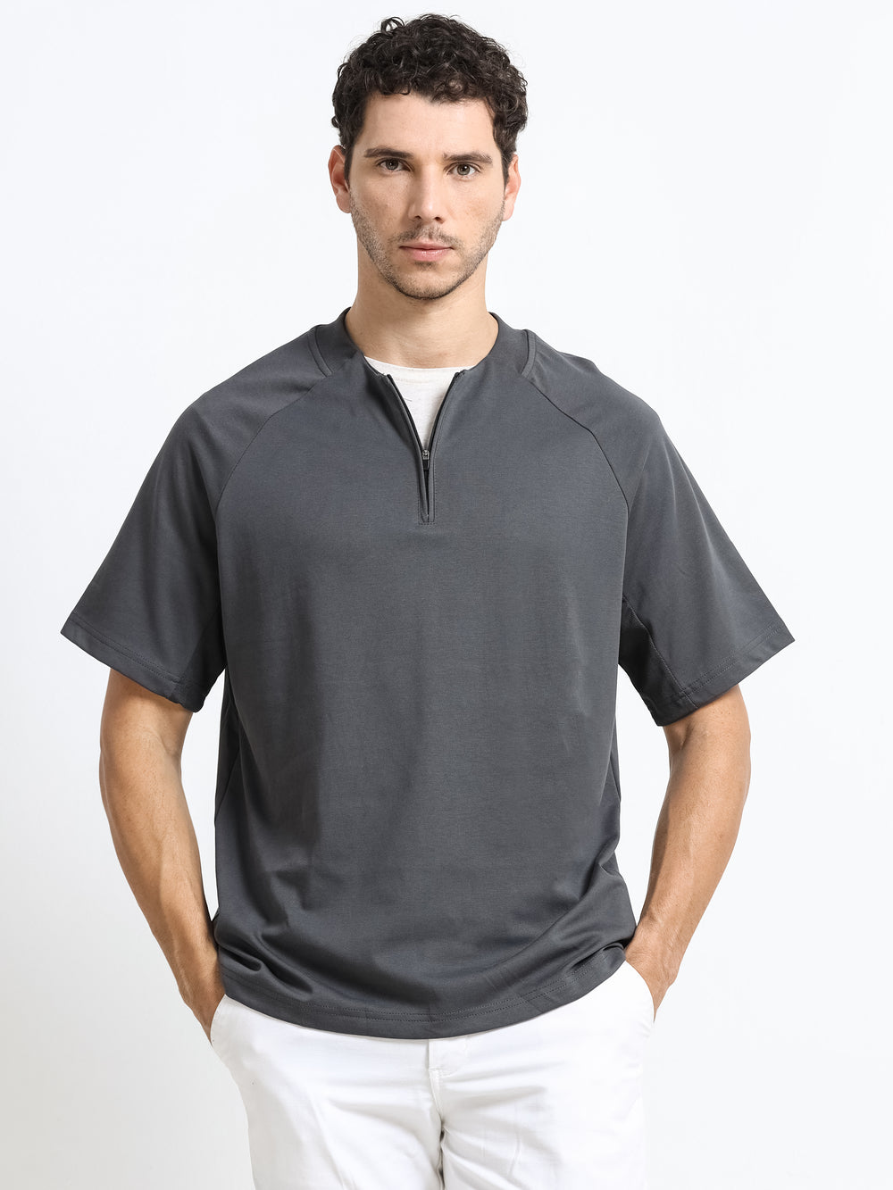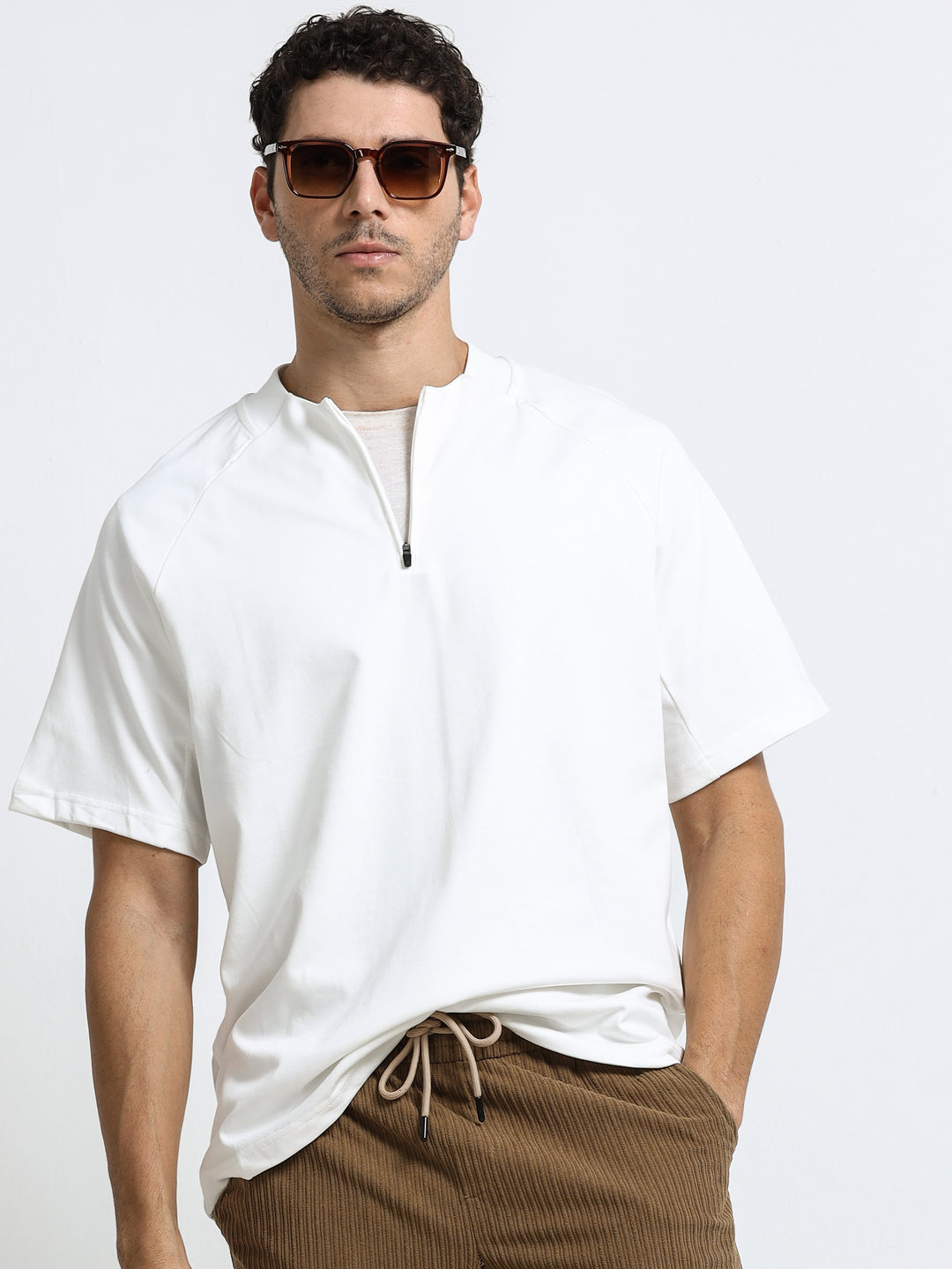 Minimal Zip-Neck White T-Shirt