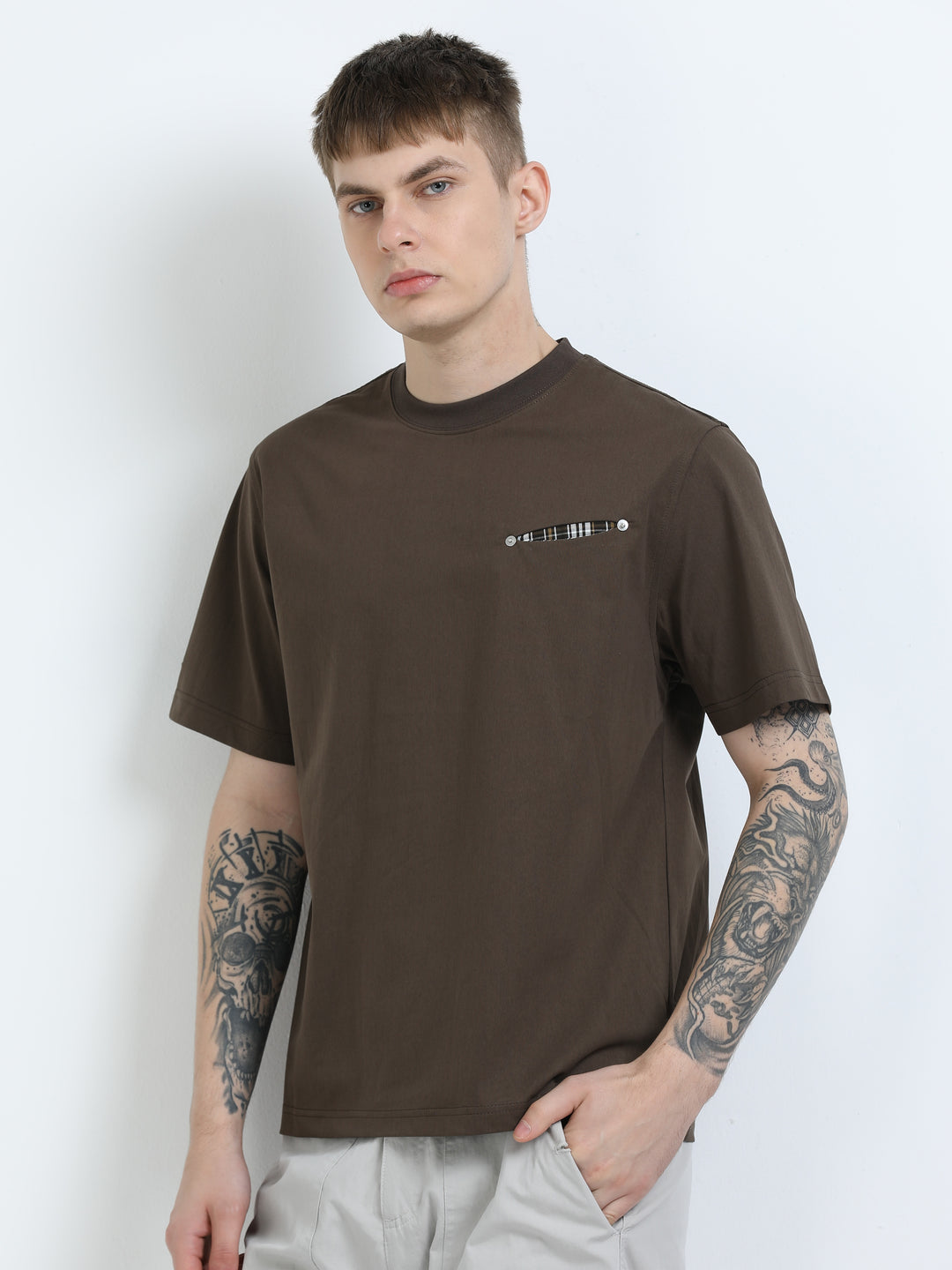 Tonal Pocket Brown T-Shirt