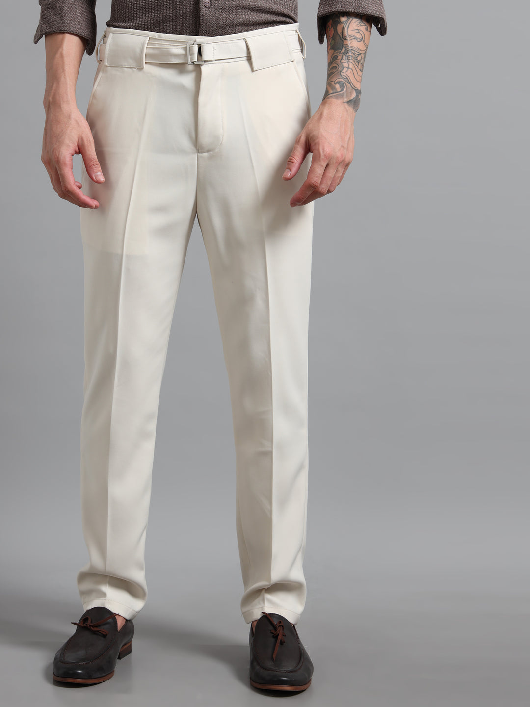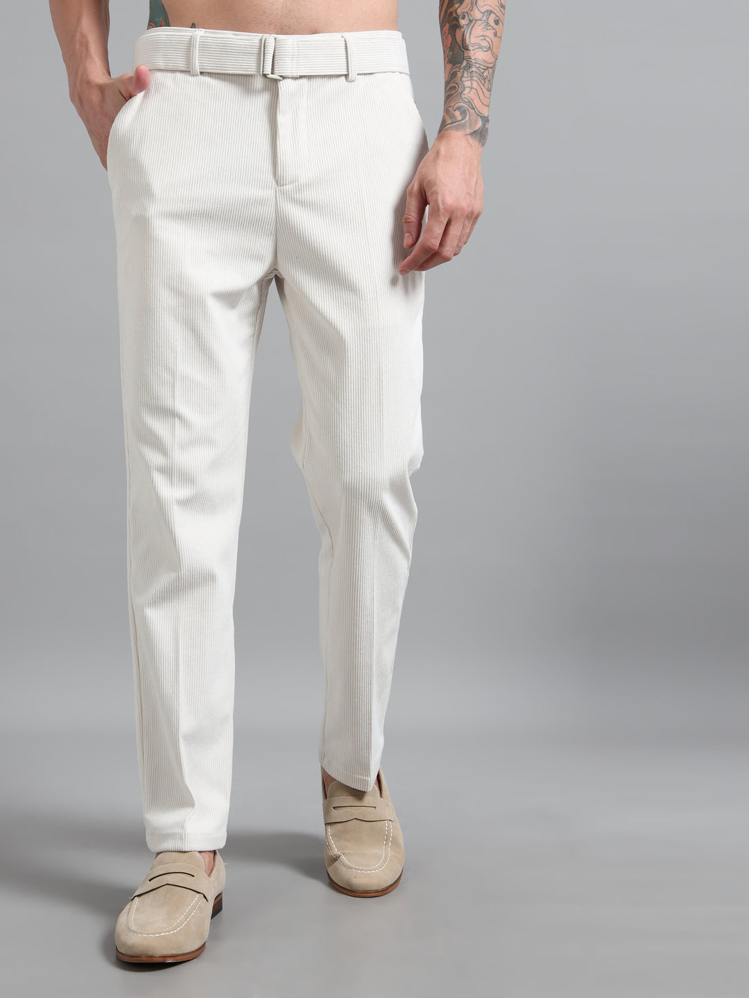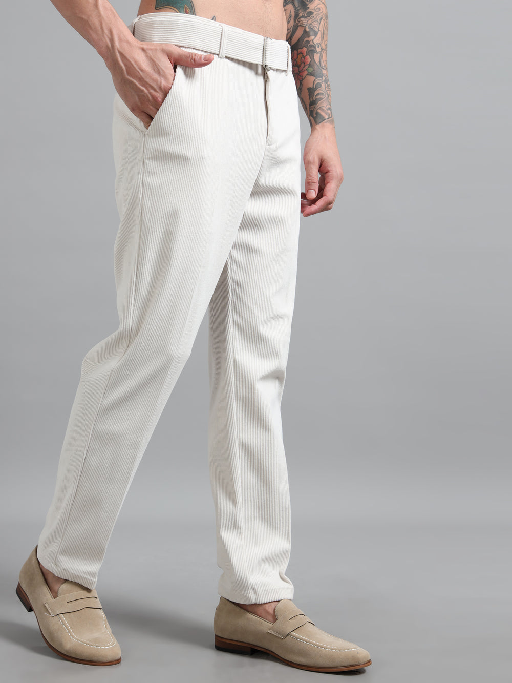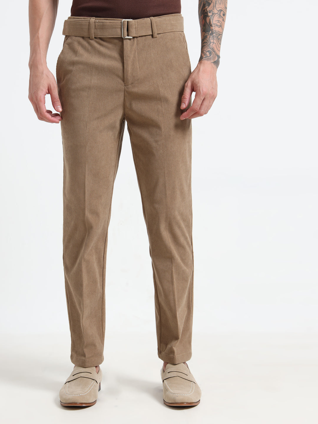 Refined Corduroy Trousers with Integrated Belt - Light Beige