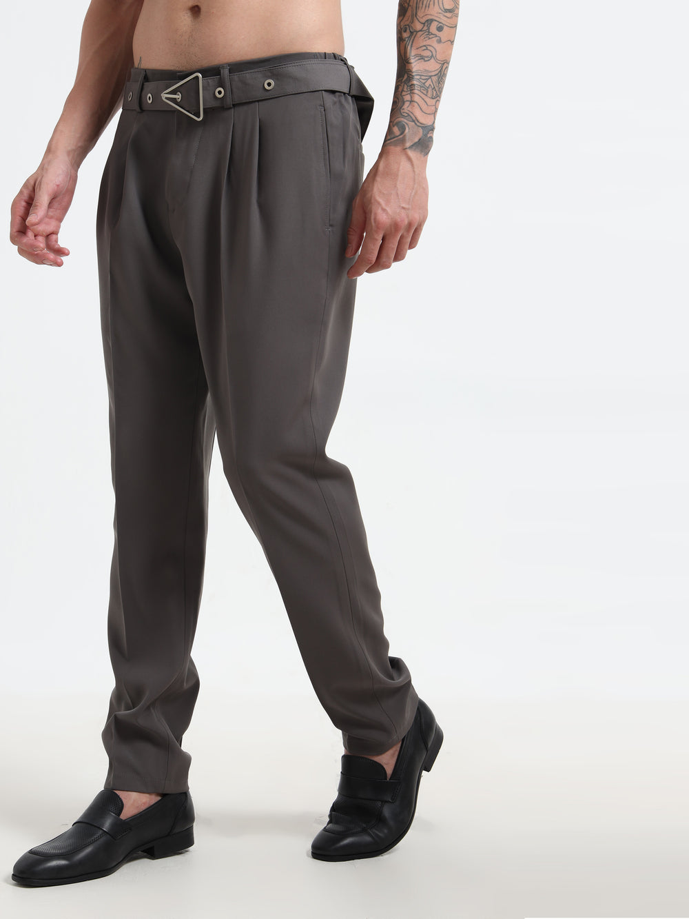 Refined Corduroy Trousers with Integrated Belt - Light Gray