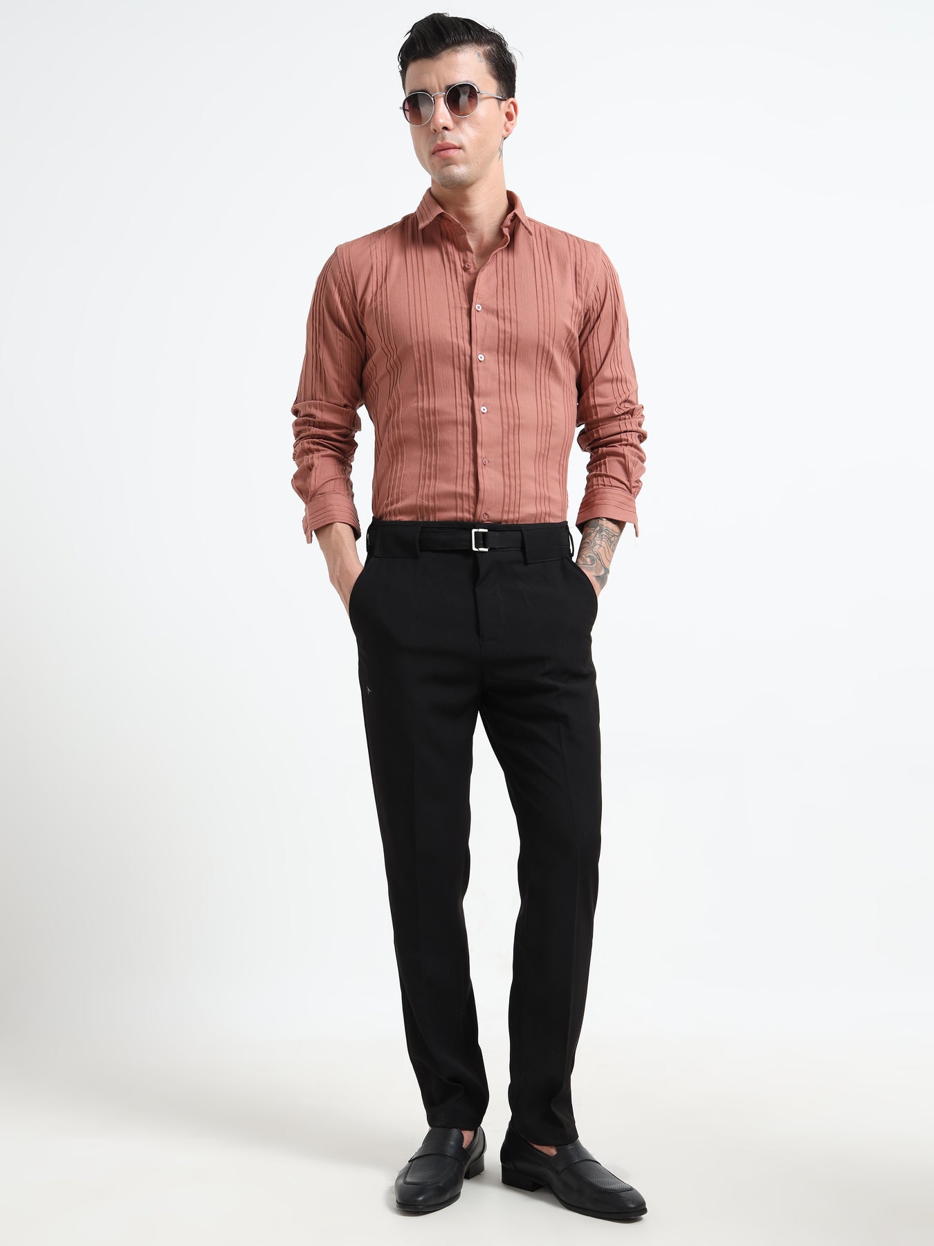 The Sterling Slim-Fit Trousers offer expert tailoring with a modern edge, crafted from a premium wrinkle-resistant fabric for lasting sharpness. Their streamlined silhouette moves comfortably, while integrated belt loops and precise leg pleats deliver a polished, professional appearance. Ideal for pairing with a structured blazer or a casual knit, these trousers provide versatile sophistication and a flawless fit, making them a staple for the discerning gentleman’s wardrobe.