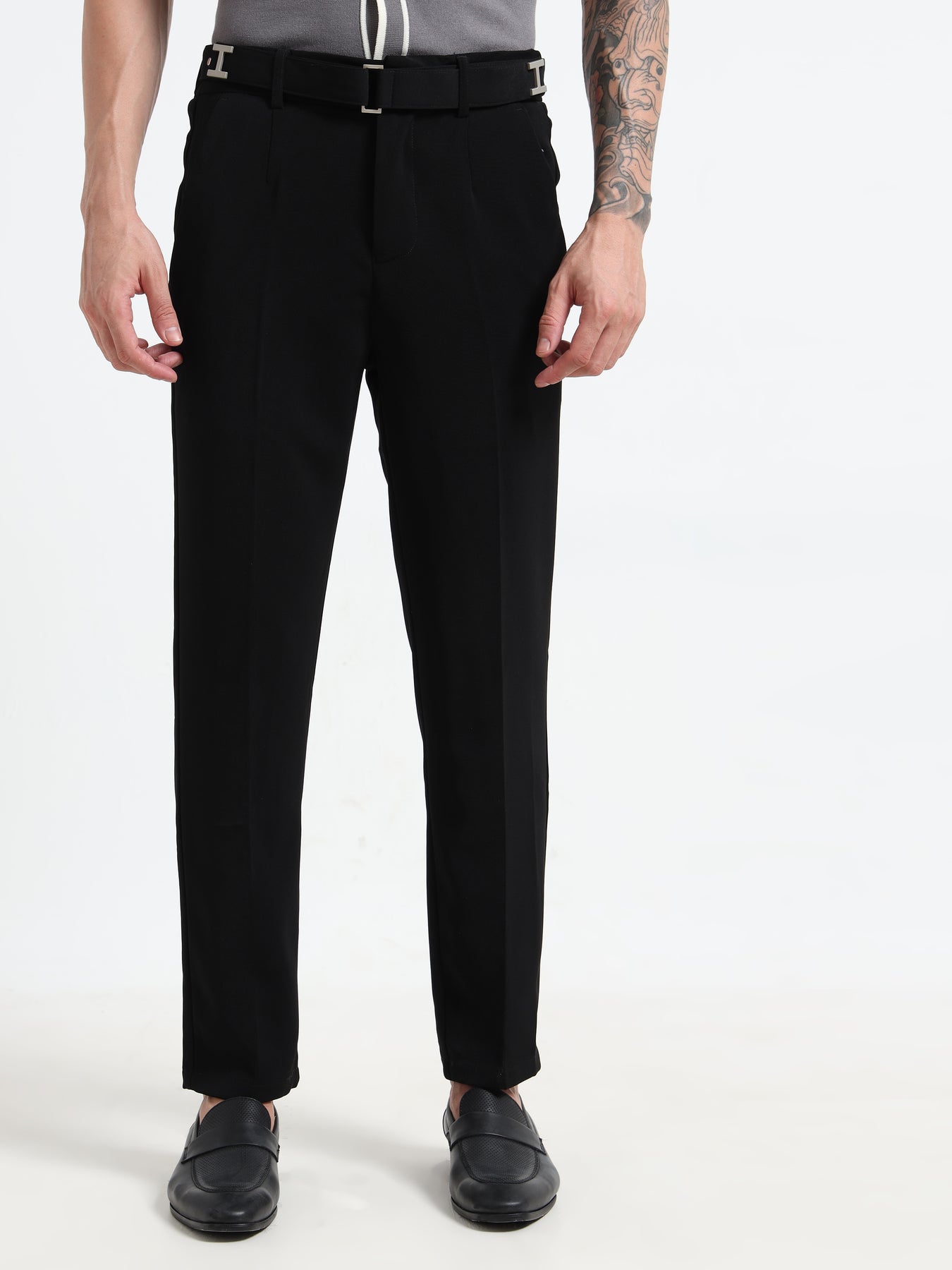 The Sterling Slim-Fit Trousers in black combine classic Gurkha-style belt buckles with a modern slim silhouette, embodying the refined elegance of the Old Money Collection. Crafted from lightweight material, these trousers ensure comfort throughout the day while maintaining a polished appearance. Versatile enough for formal, semi-formal, and casual occasions, they offer a sophisticated foundation for any wardrobe.