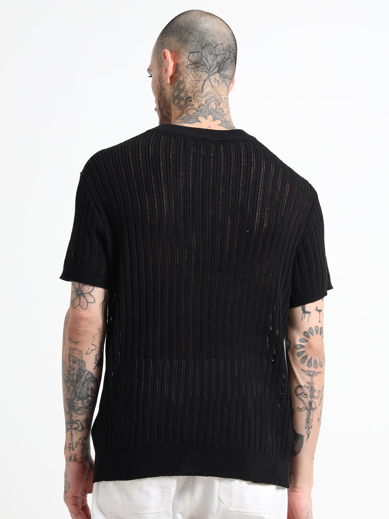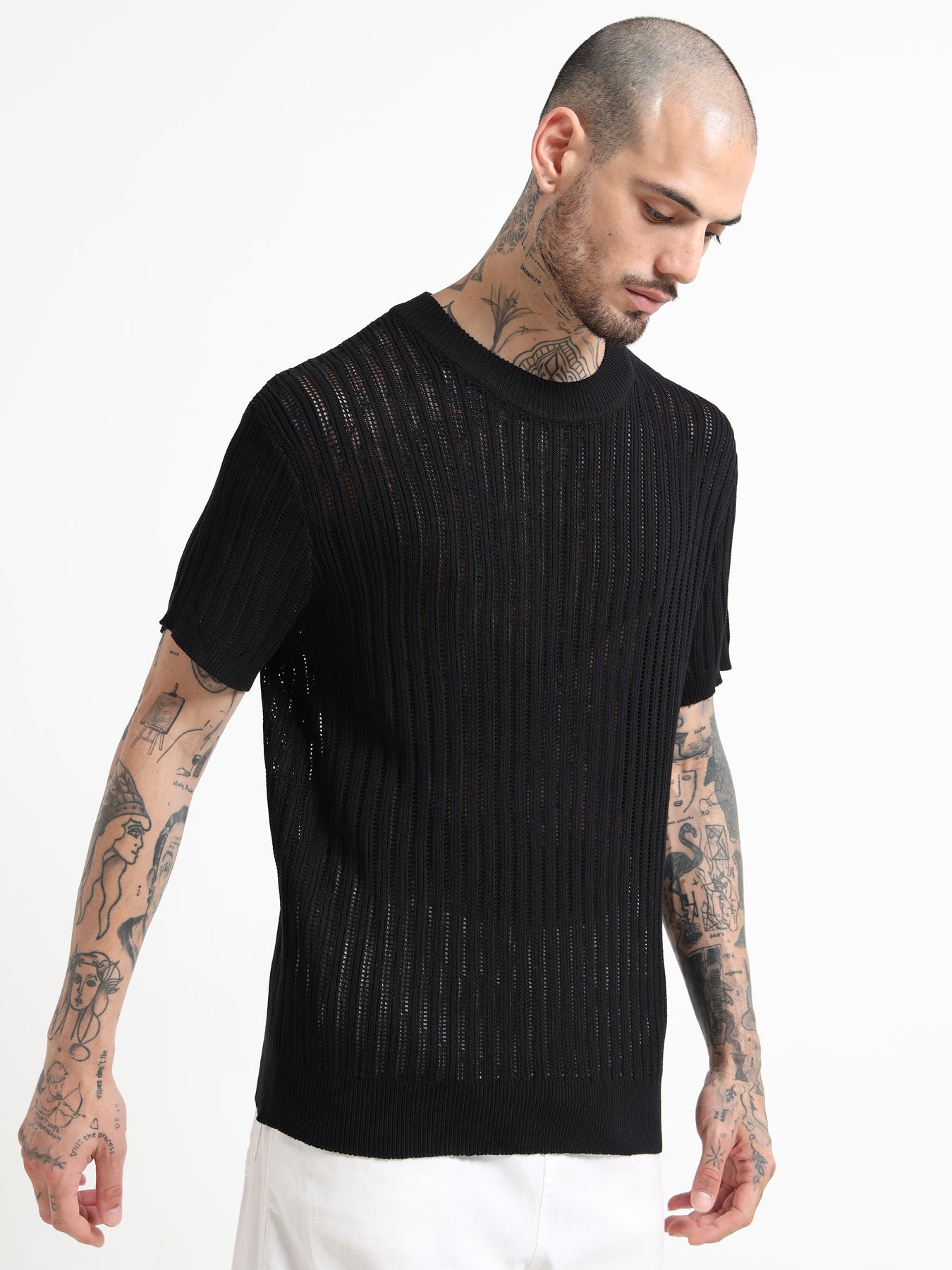 Men's Rib-Knit Crewneck Sweater T-Shirt - Black