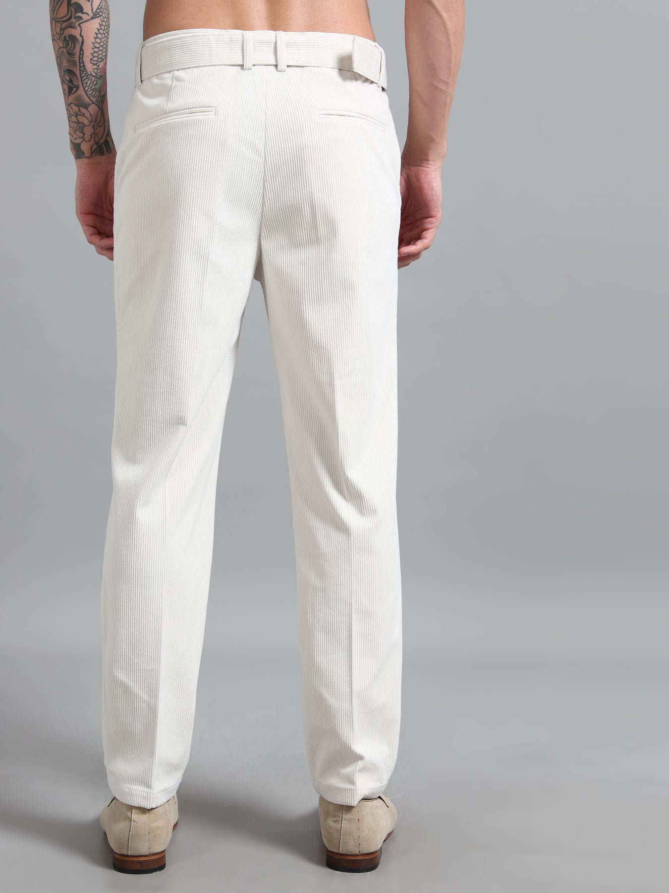 Refined Corduroy Trousers with Integrated Belt - Light Beige